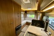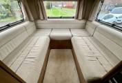 This model comes with the rear U-shaped lounge layout, twinned with a sizeable overcab double with ladder. Truma heating and ultrastore boiler keep the Imala 625 warm in the colder months.