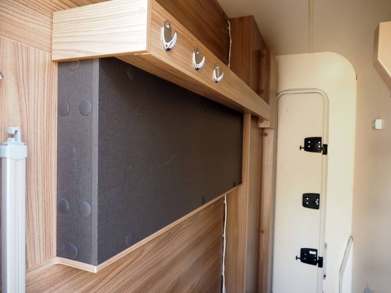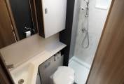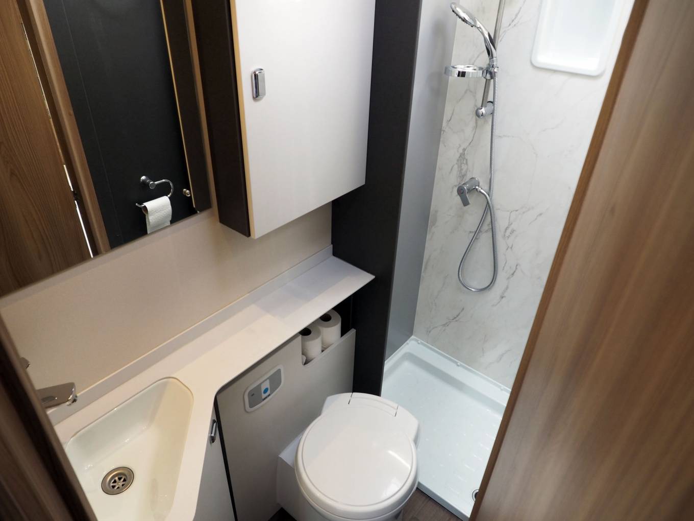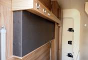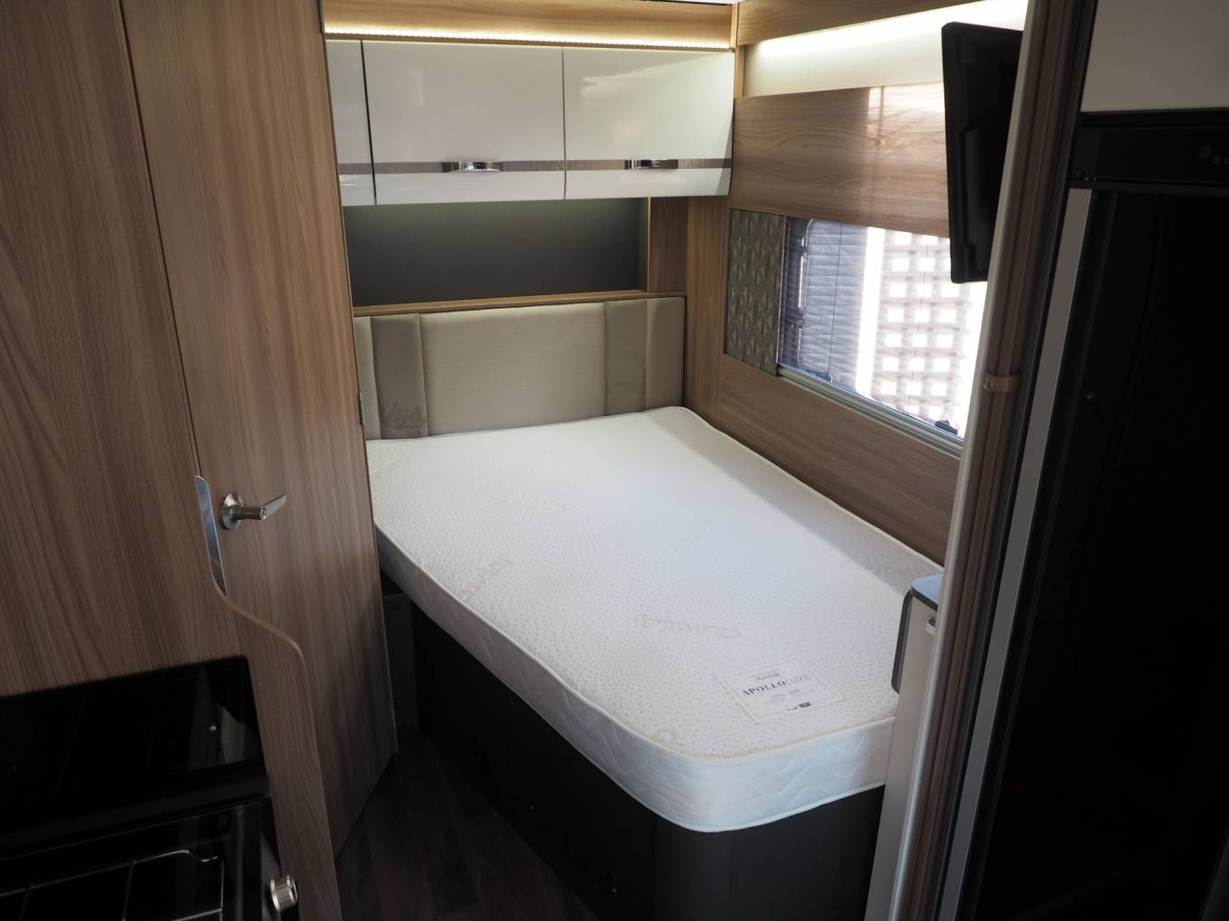 The forward dinette has an electrically lowered table with extension, this helps to create the base for the forward dinette bed. Each of the two side settees has a pop up travelling seat, making 4 travelling seats in total.
