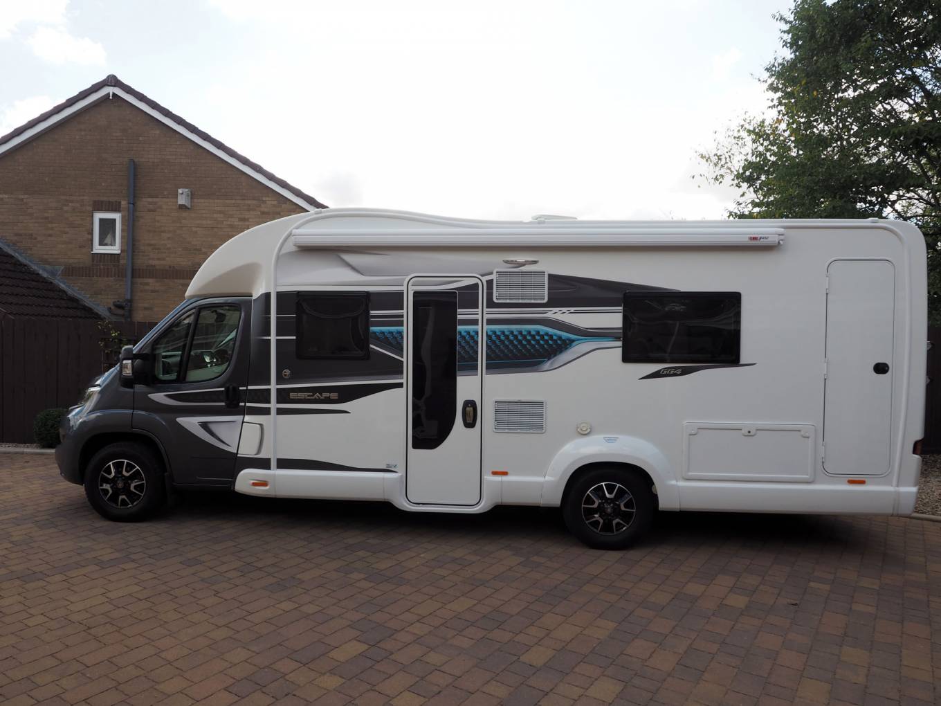 Equipment levels are high including dual fuel heating and hot water, solar panel, roll out sun canopy, 2 bike rack. The washroom features a fully encloseable solid screened shower, while the kitchen has pop up worksurface, large fridge freezer, dual fuel hob, microwave, gas oven and grill. There is a huge variety of storage options including a large rear underbed store with internal and external access and the full height garage with access both sides.
