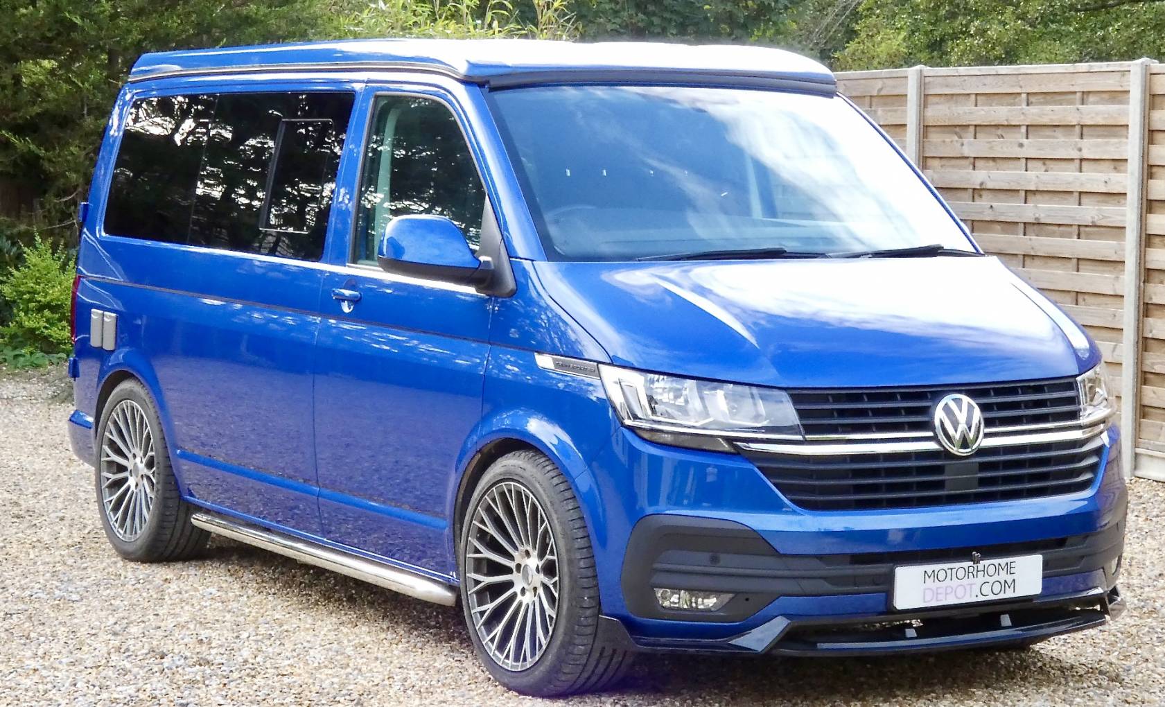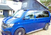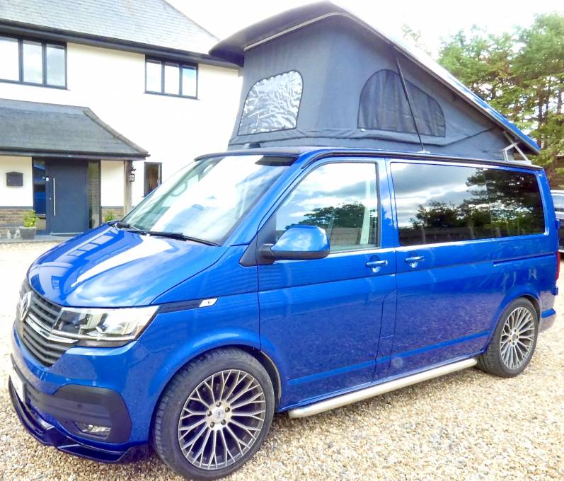 This camper has a Service Plan paid for until 9.12.2026, this includes it's next service, MOT and breakdown cover and the VW warranty is to December 2026. The conversion was done by Southlands Motor Company Whitley Bay, beautifully finished with Oak wood kitchen tops and table, with a leather and honeycomb design interior trim. DSG auto gear box, 4 new tyres with 20" wheels, Koni front & rear lowered suspension, Evo technik front and rear spring. Vehicle located Warsash Southampton.