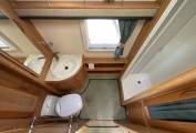 The washroom has a sliding privacy door and a wardrobe that can be accessed from in or outside of the washroom. Again, plenty of storage cabinets and drawers for all your clothing. Truma blown-air central heating and hot water heating, black-out blinds and fly-screens throughout.
