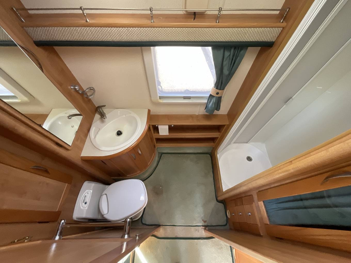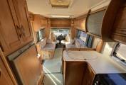 The main event to the Cheyenne is the end washroom this houses a fabulous separate shower cubicle with folding Perspex door, a built-in washbasin with mixer tap and a Thetford cassette swiveling toilet with electric flush.