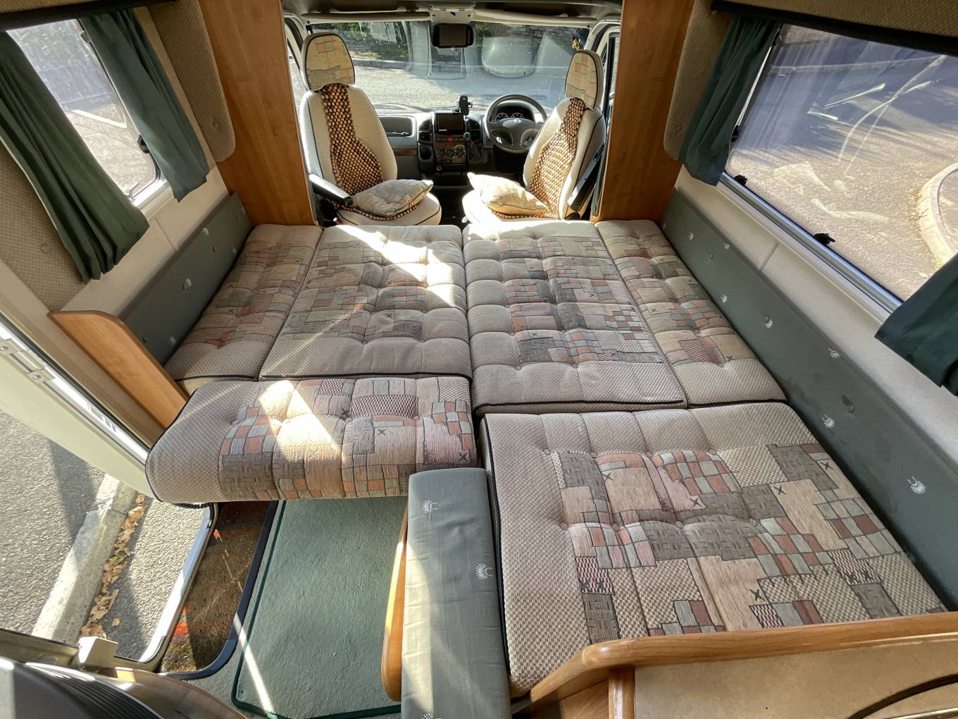 This is 2 berth with 2 3 point travelling seat belts, and 2 lap belts in the rear. Based on a Fiat Ducato with a 2.8L engine combined with a manual transmission. A maximum gross weight of 3400kgs so can be driven on any standard UK driving license. MOT until 27/07/2026, Timing belt kit replaced 30/07/2025.