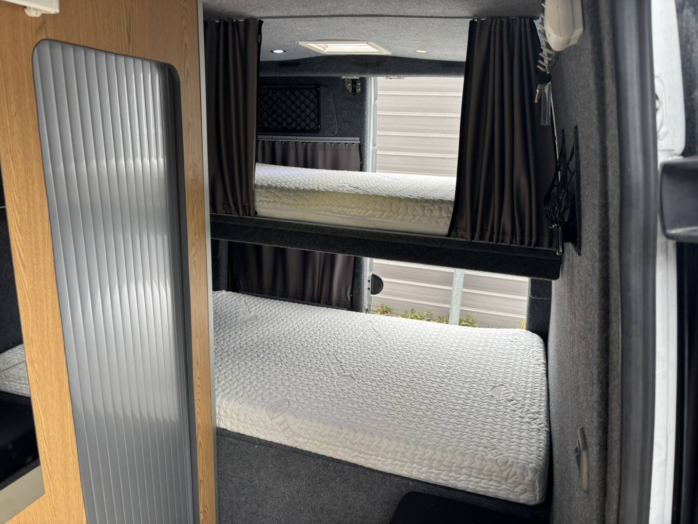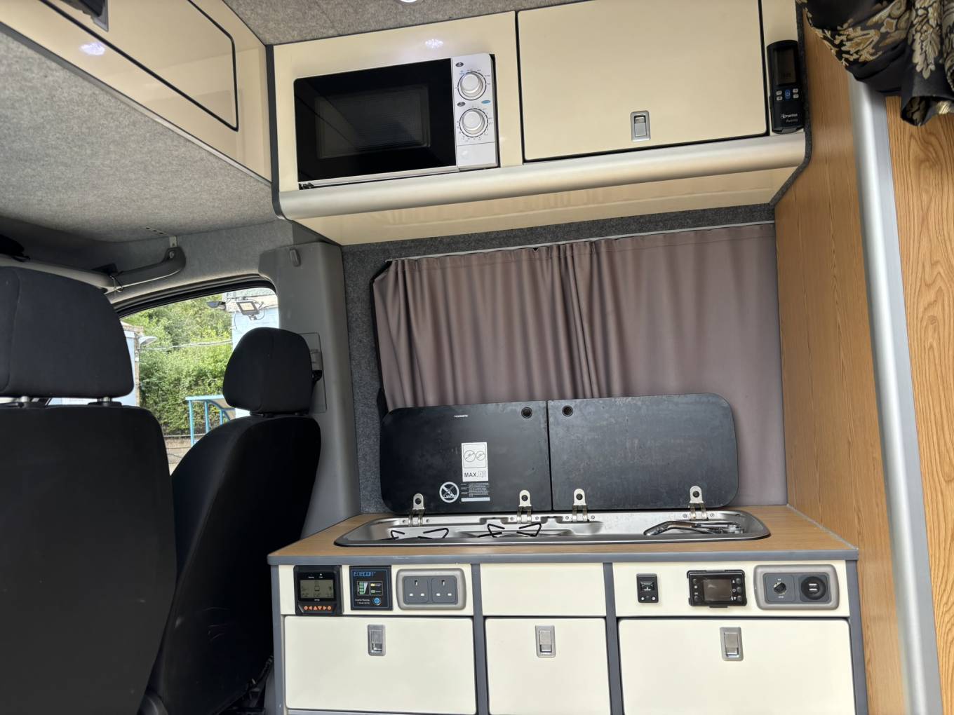 This Sprinter benefits from having a fixed double and single bed towards the rear, meaning you won't have to spend time making up the bed in the evening. It also comes with a fully equipped washroom which includes a cassette toilet and shower. The kitchen unit is fitted with a two-ring burner, Fridge, Sink/mixer tap and microwave.