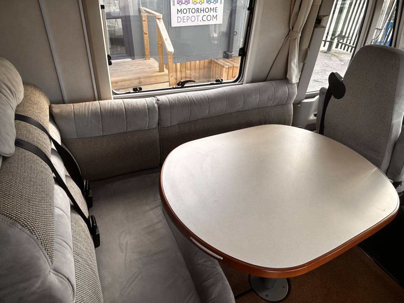 For year-round touring, the motorhome is equipped with cab air conditioning for summer comfort and a full heating system for those cooler months. A solar panel adds off-grid capability, while the wind-out canopy extends your living space outdoors. Practical extras include a reversing camera, tow bar, and bike-friendly storage options. Entertainment and convenience are covered with a radio, aerial, and satellite system, while the fitted alarm system offers added peace of mind.