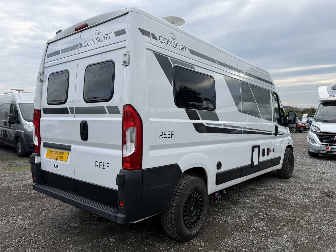 The Consort Reef 2022 Peugeot boxer 335 Pro base vehicle converted in 2025 by Consort to demonstrate what off grid capabilities can be achieved in a camper van.