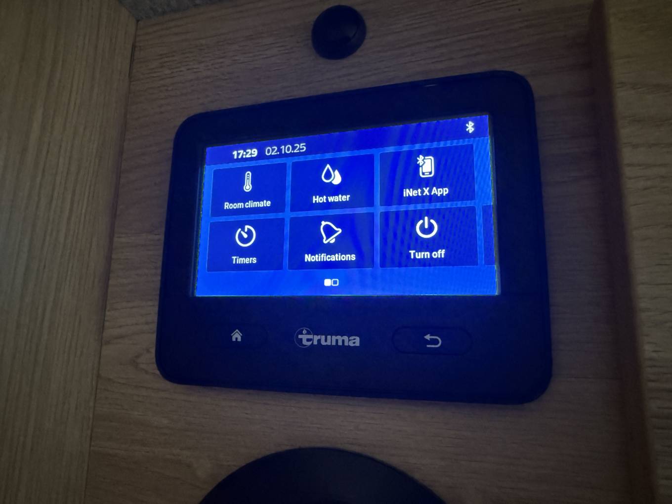 The heating in the Reef comes courtesy of the very latest Truma 4de diesel and electric boiler which utilisers the vehicles diesel tank to power the boiler rather than the onboard LPG tank which runs the gas hob , this also has the latest Truma control panel the first one we have ever seen ( see Pictures).