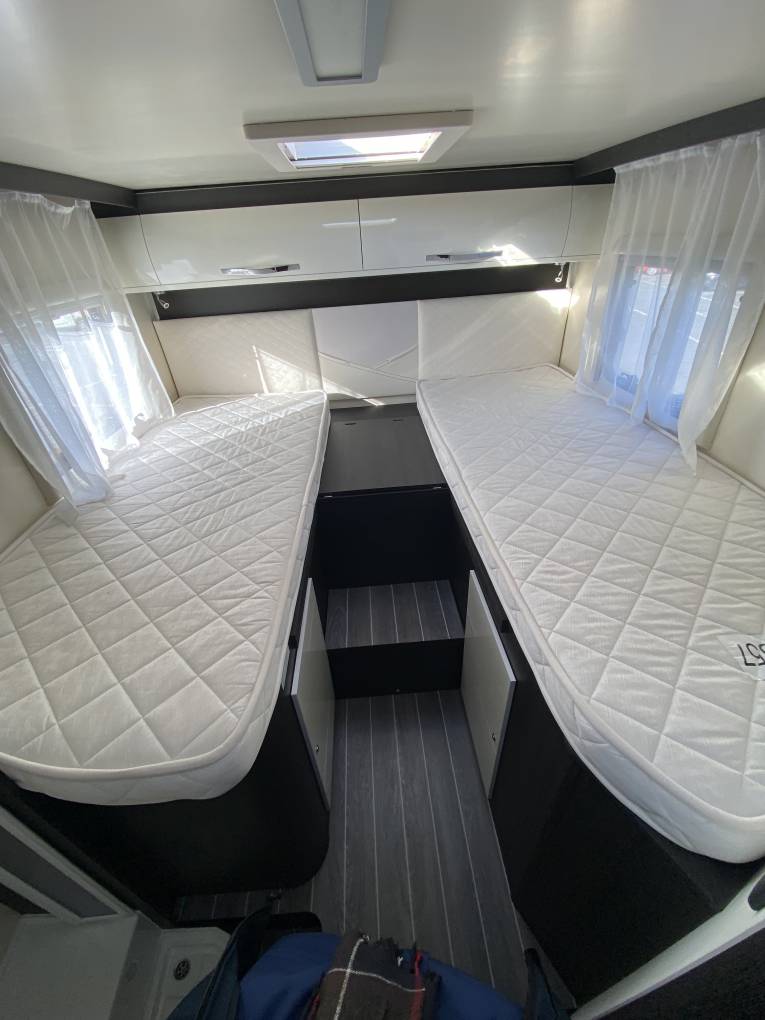 The rear of this vehicle is where luxury meets style as the rear bedroom has comfortable mattresses on two large single beds or converted to a massive king size double bed and there is a modern bathroom with a separate spacious shower room sitting opposite. All of this is separated from the main living area with a privacy door.