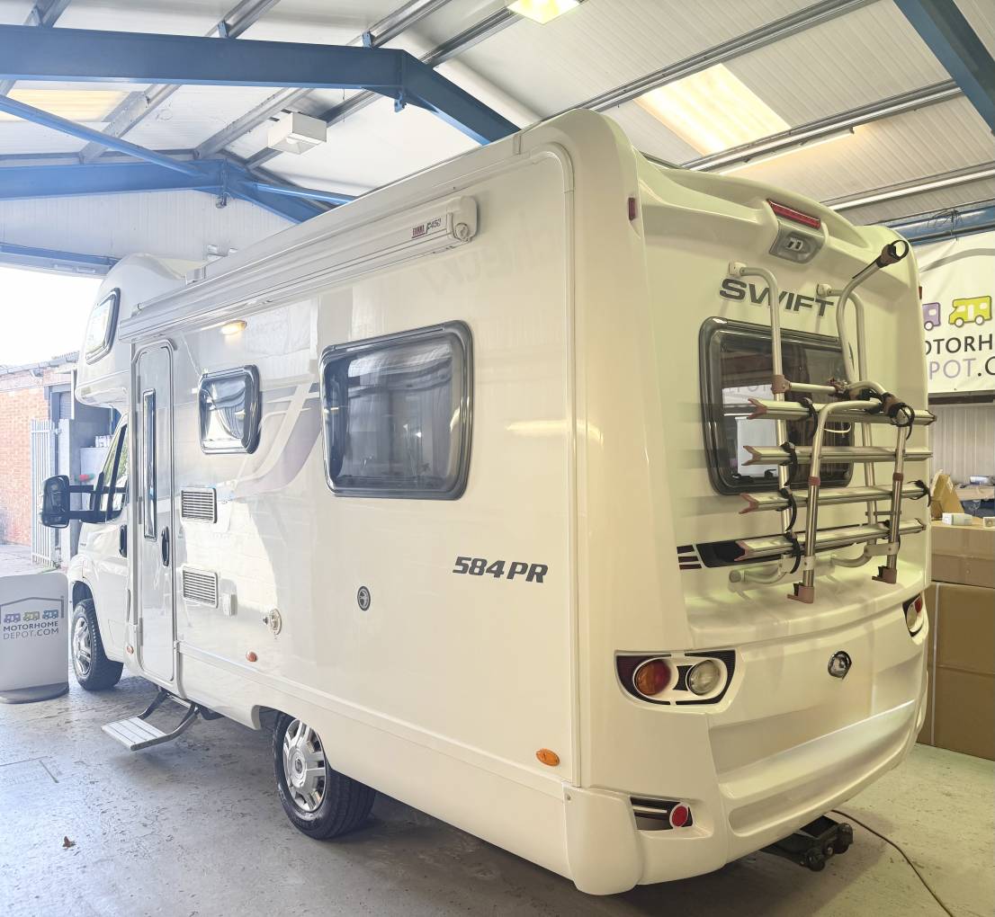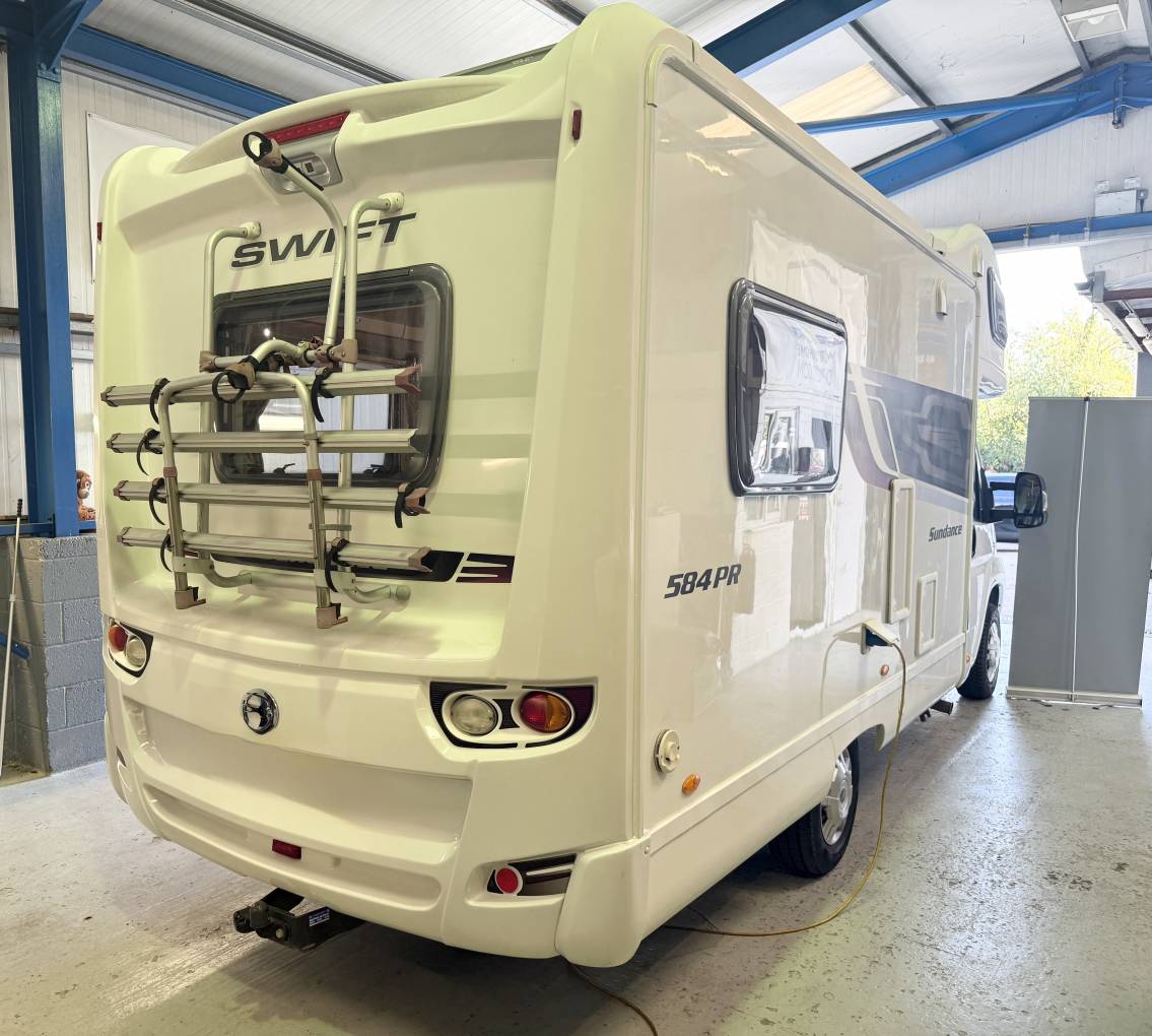Extras include wind out canopy awning, cab air con, cruise control, tv aireal, solar panel, bike rack, reversing camera and tow bar.