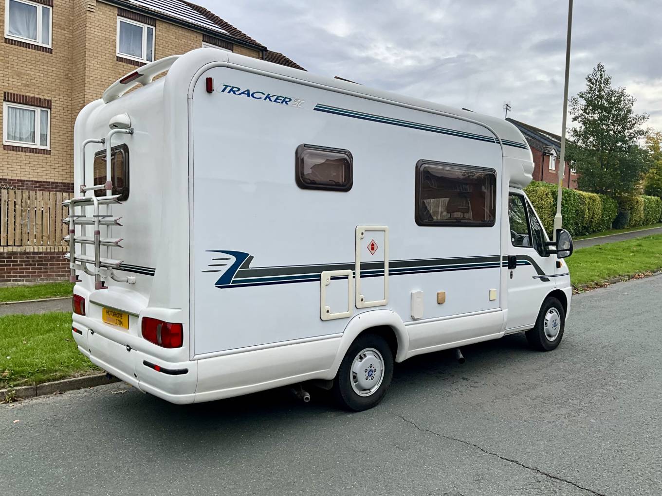 The Tracker SE comes with a host of extras, including wind out awning, bike rack, external BBQ point, external shower, solar panel and more.