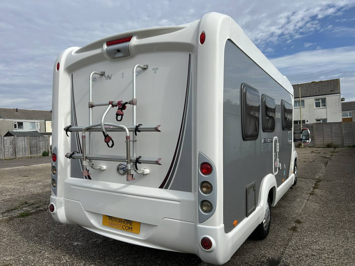 Outside the van is a wind out canopy, solar panel, bike rack and TV aerial. The van has 4 new tyres.