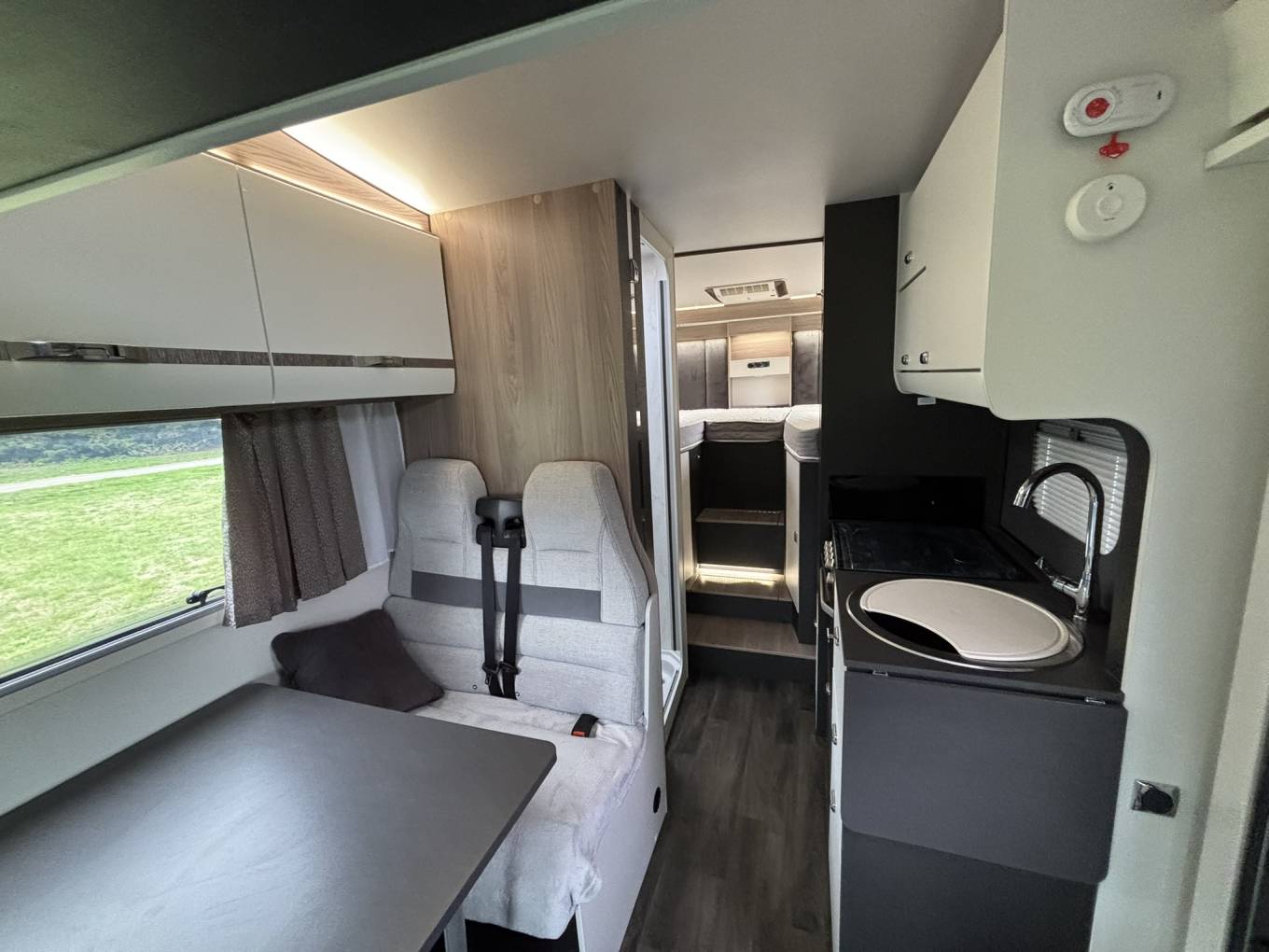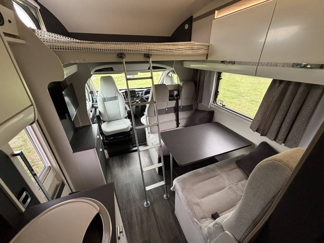• Spacious Lounge: Comfortable parallel seating with swivel cab seats, converting into a generous double bed.