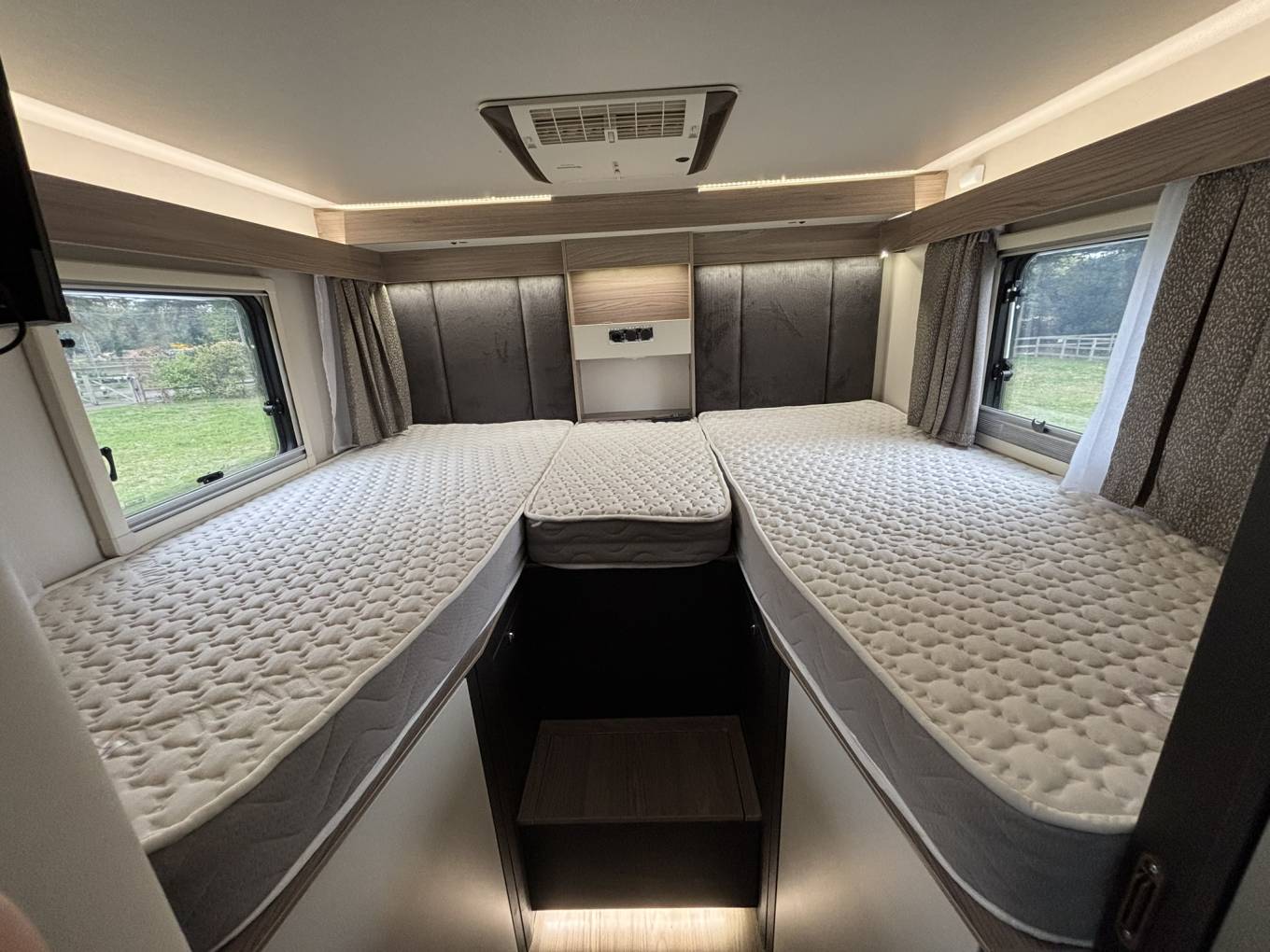 • Rear French Bed: Fixed rear double bed with under-bed storage.