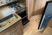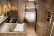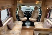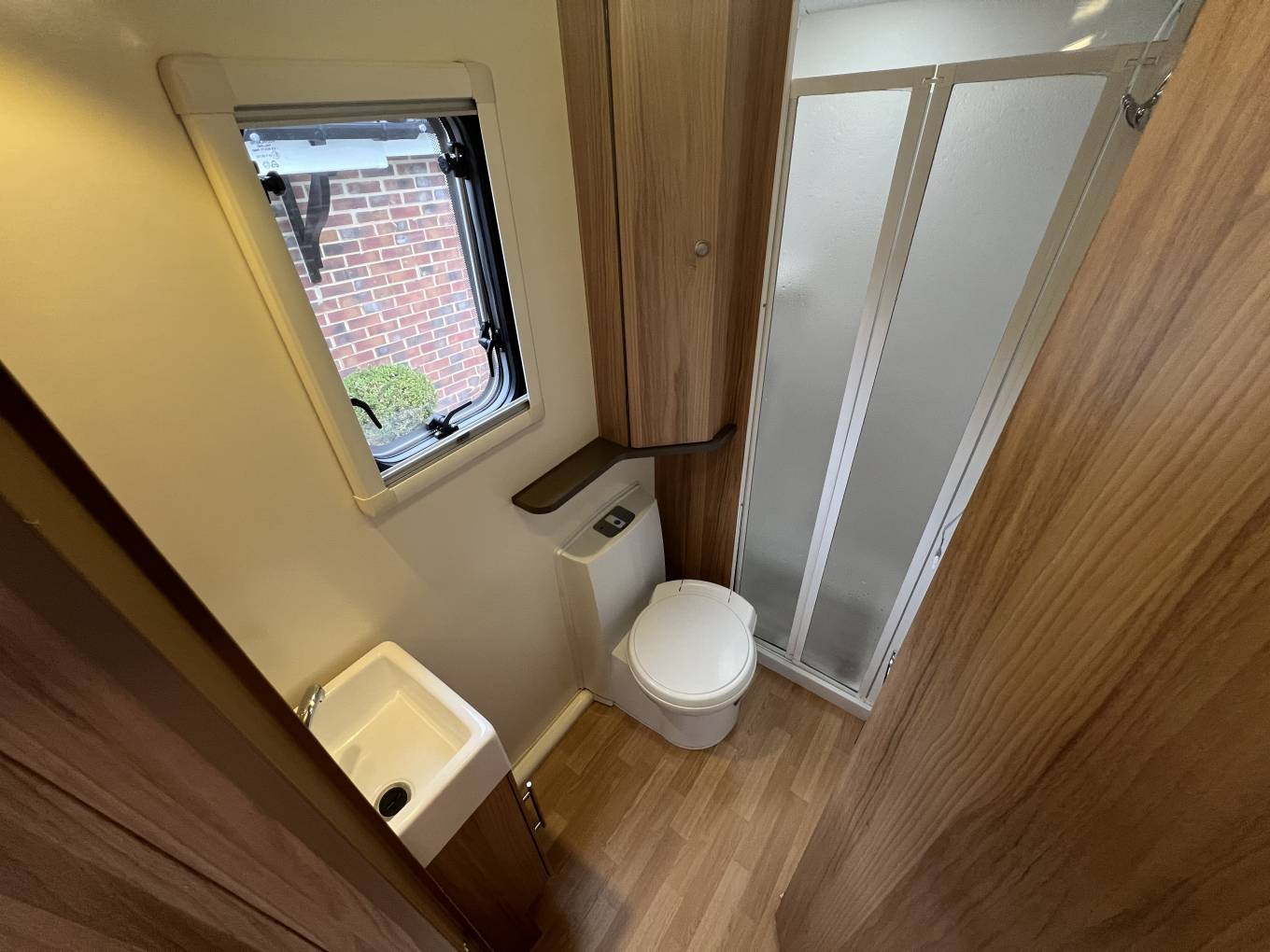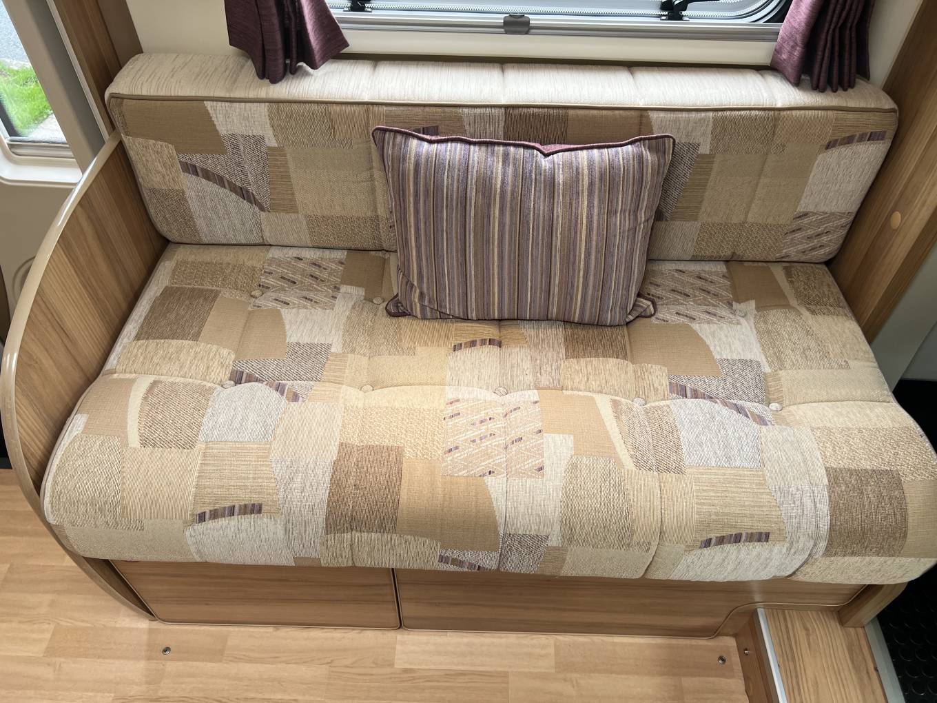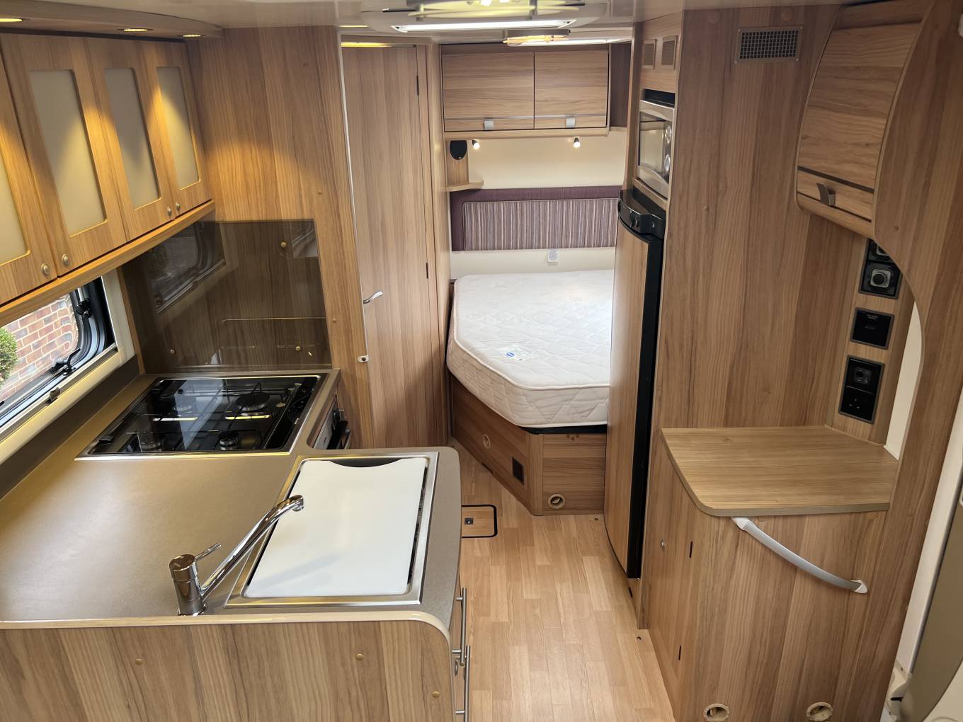 Briefly, there is a washroom at the rear next to the rear fixed bed, kitchen, twin sofas behind 2 swivel seats and loads of storage. It is 7.52 metres long, with 41,496 travelled and 1 owner from new.