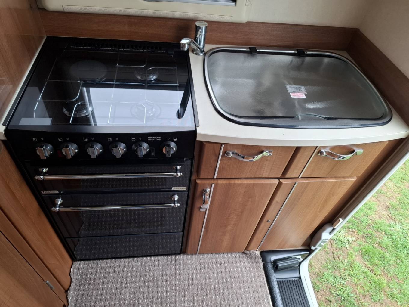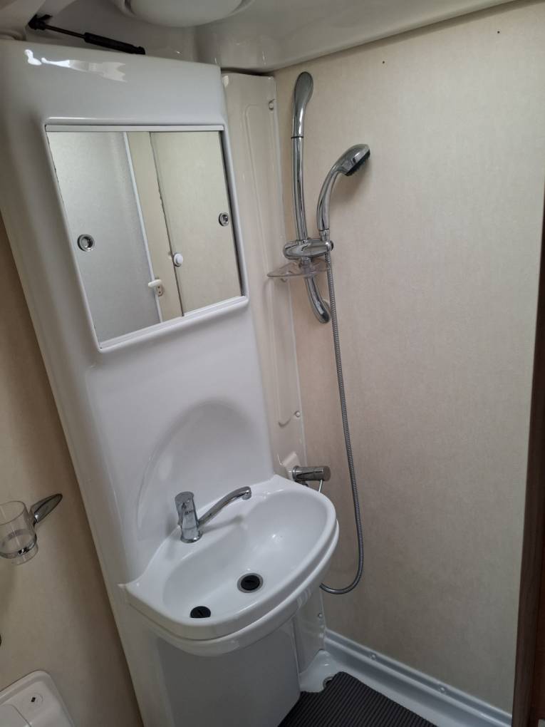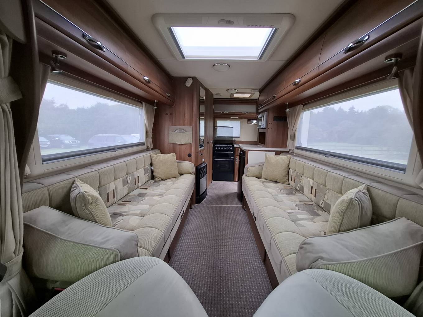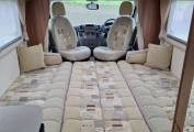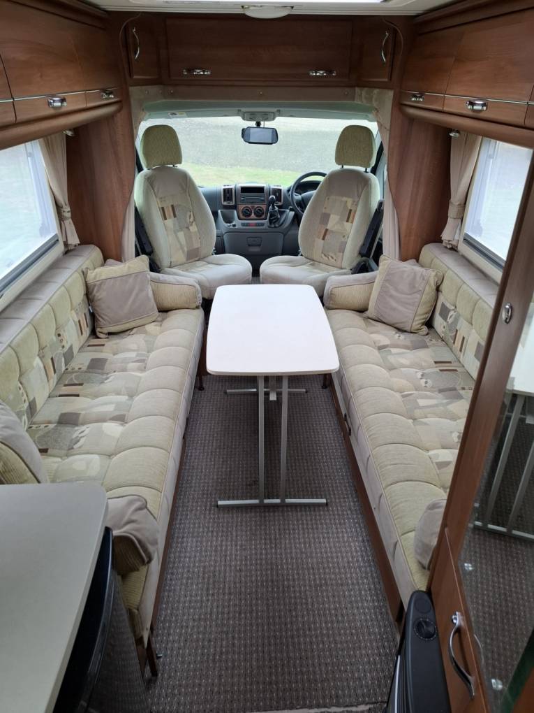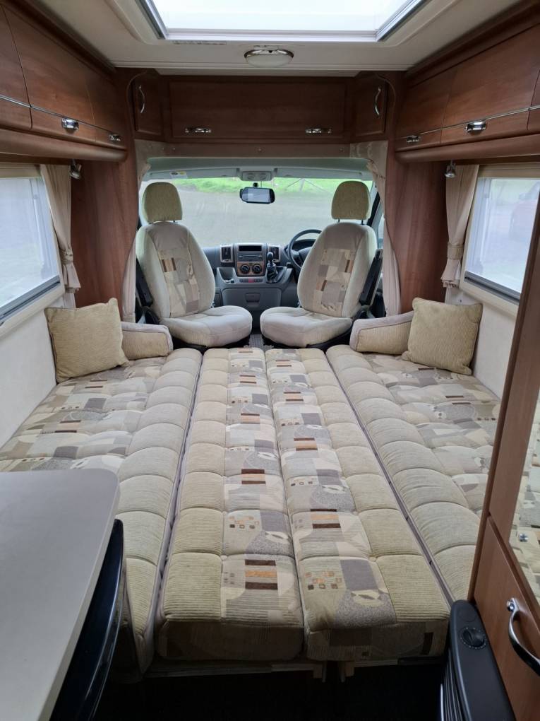 Behind the cab is a large leisure/dining area with opposing side sofas, that can be enhanced by the use of the swivel cab seats. The seating can be readily converted into either a large transverse double berth(210cm (L) x 194cm (W)), or used as two single berths (194cm (L) x 70cm (W)).