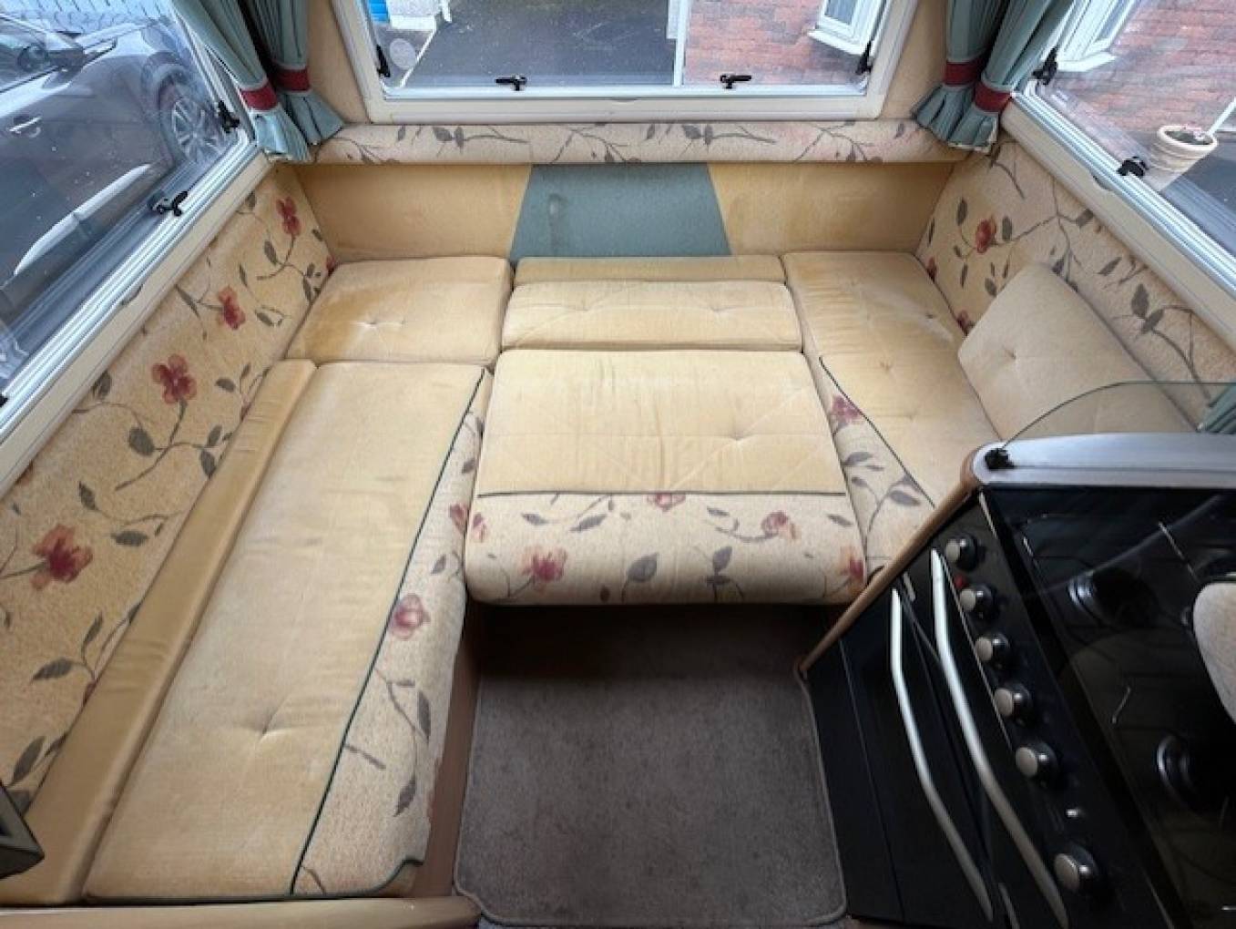 The spacious U shape lounge is located at the rear of the vehicle and has a free standing table which can be stowed away whilst travelling.