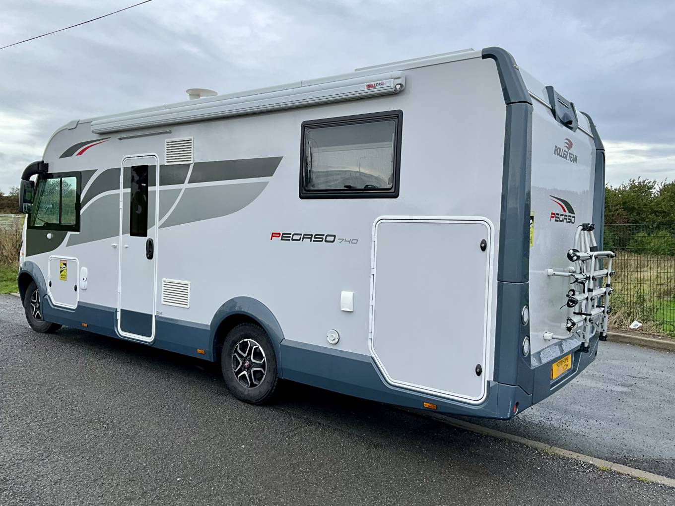 Welcome to the sale of this ever popular Roller Team Pegaso 740 automatic motorhome, featuring spacious rear garage, island bed and plenty of extras throughout.