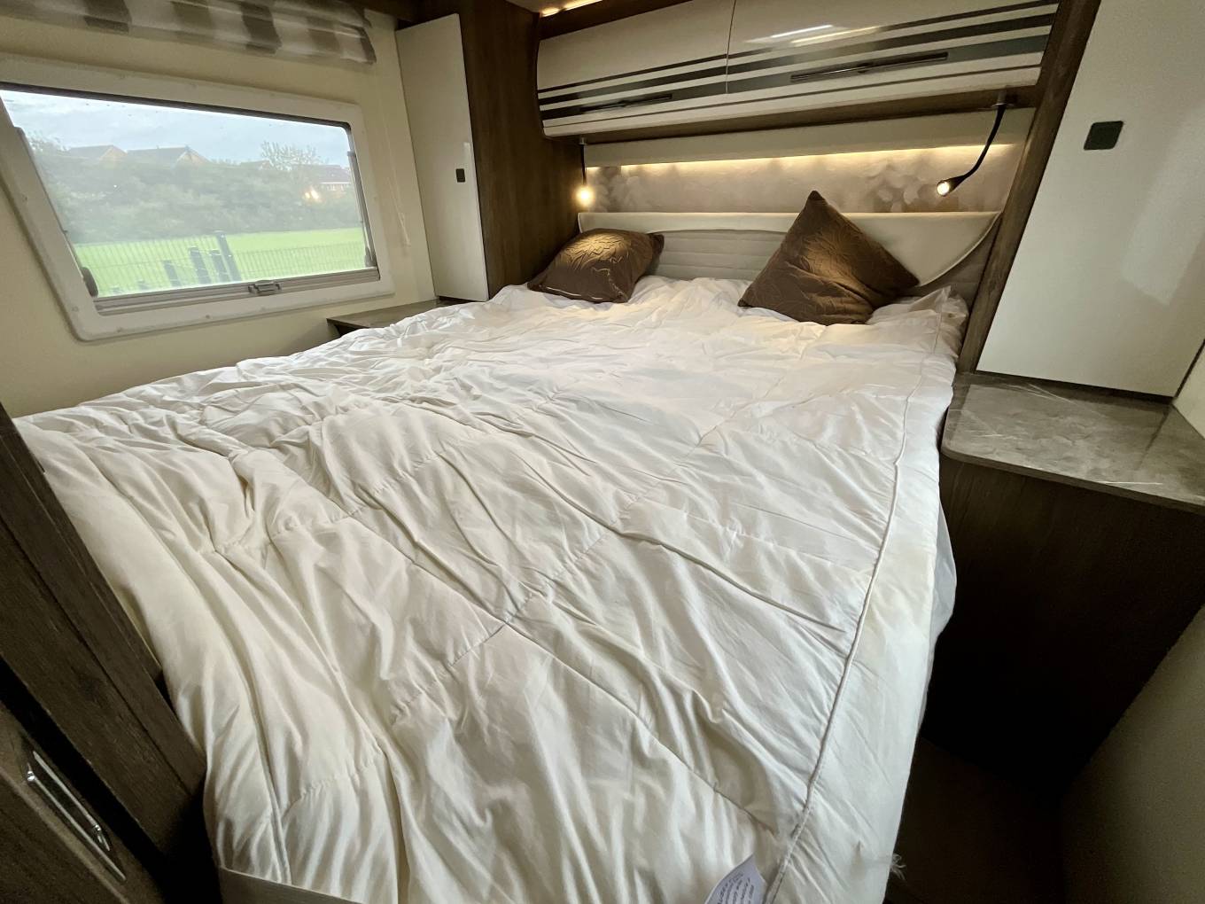 To the rear, a spacious island bed measuring 1.90m x 1.36m features. Either side are wardrobes with clothes storage, LED reading lights and overhead lockers.