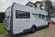 The motorhome comes with 4 travelling seat belts, driver and passenger airbags, electric window and mirrors, multimedia system including radio, CD, DVD, Bluetooth and twin aspect reversing camera, cab air con, cruise control, integrated concertina front cab blinds,Class1 alarm and tracker, solar panel with 2 leisure batteries, Truma heating and hot water system, TV aerial, TV, bike rack, GasLow refillable gas bottle, external gas point, grey water extension, external shower and 240v socket, wind out awning and 240v hook-up cable.