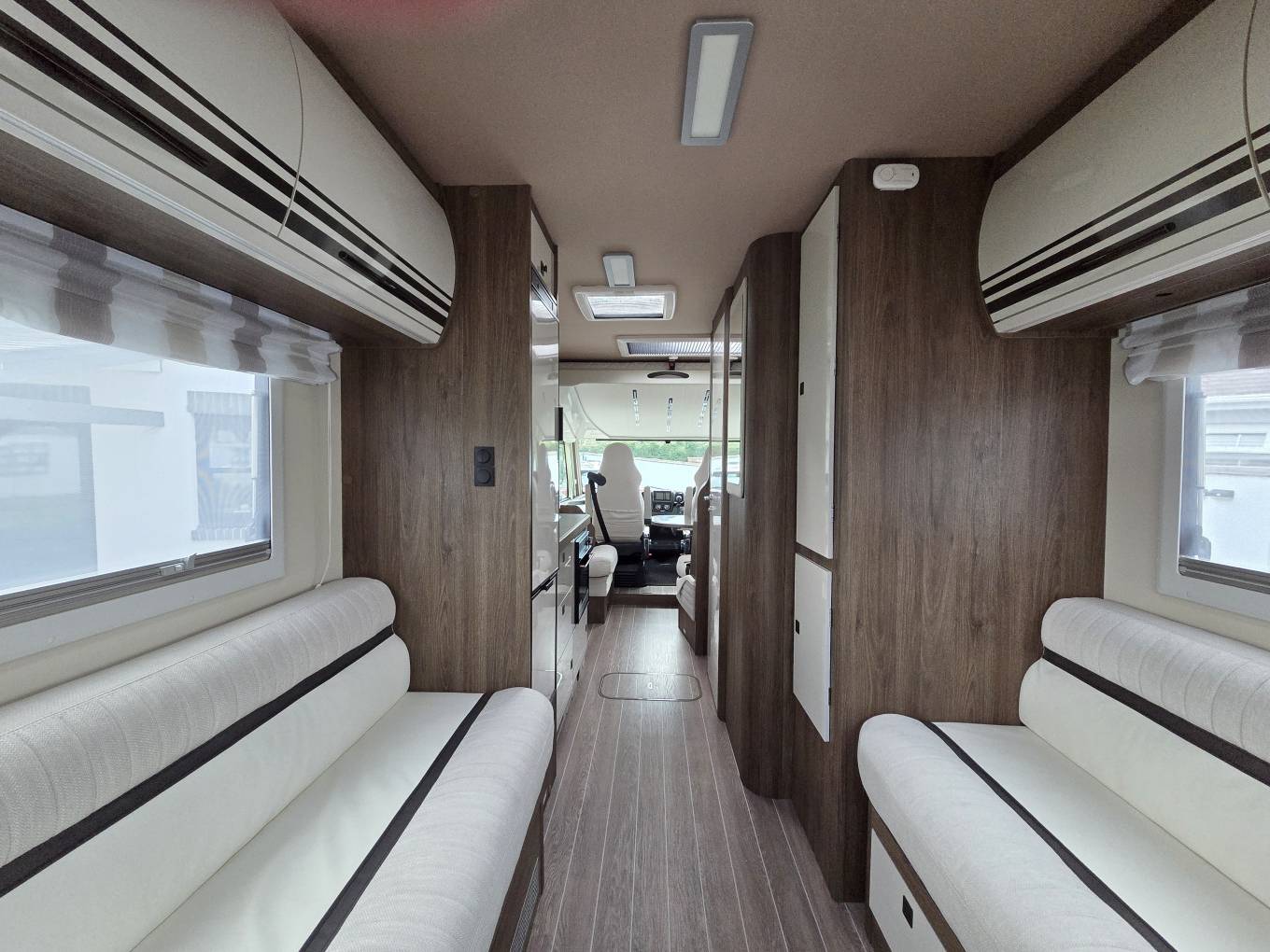 This really is a beautiful A class, with a very modern and striking interior and very well specified to give you all the comforts you need for some serious touring. Externally, there are plenty of useful storage places with a side wet locker, front wheel arch cupboard and a decent sized but fairly low garage. When entering the inside you will be impressed with the light, airy and modern feel to the interior - having all the features and room you would need for a long trip away.