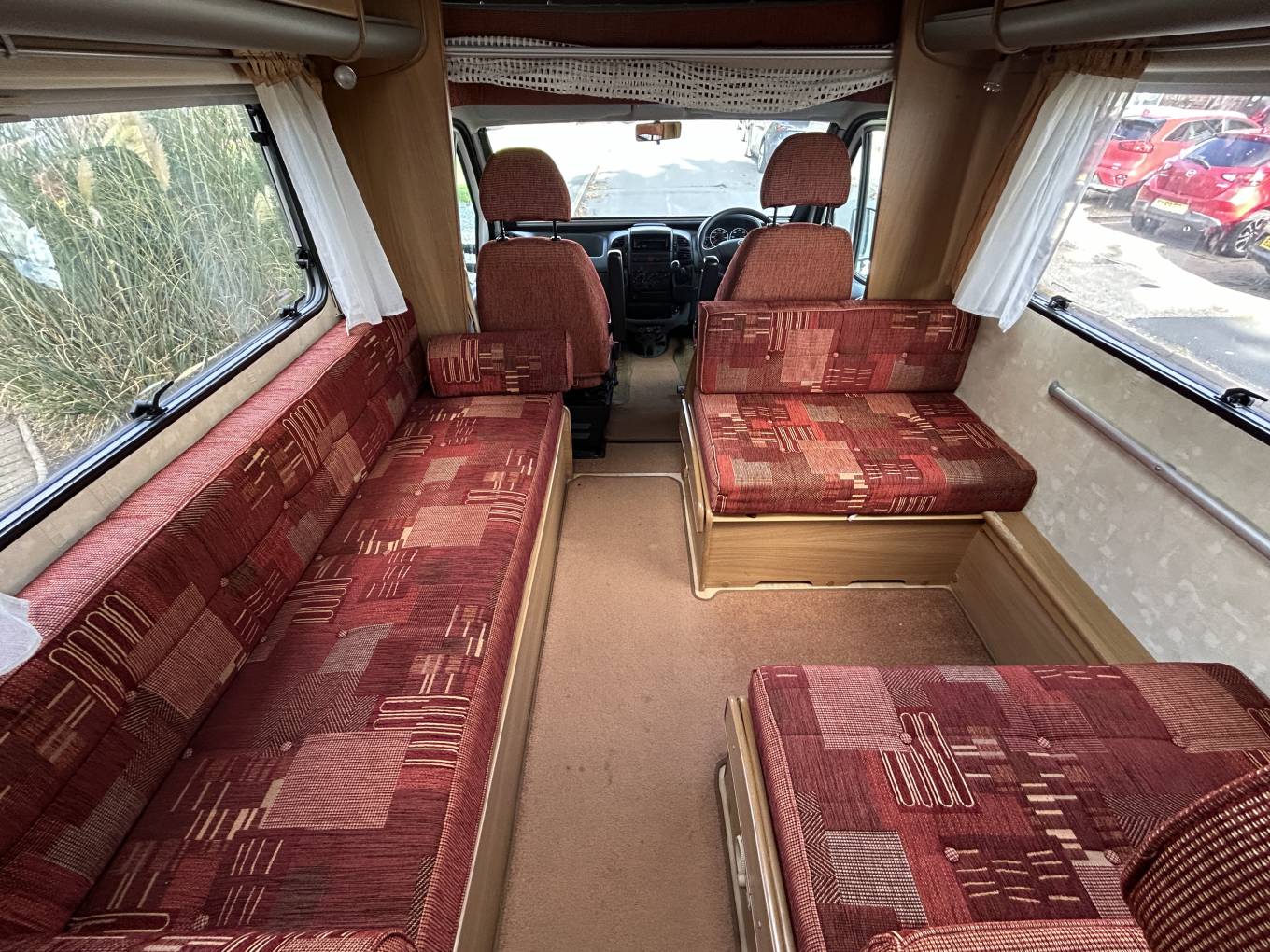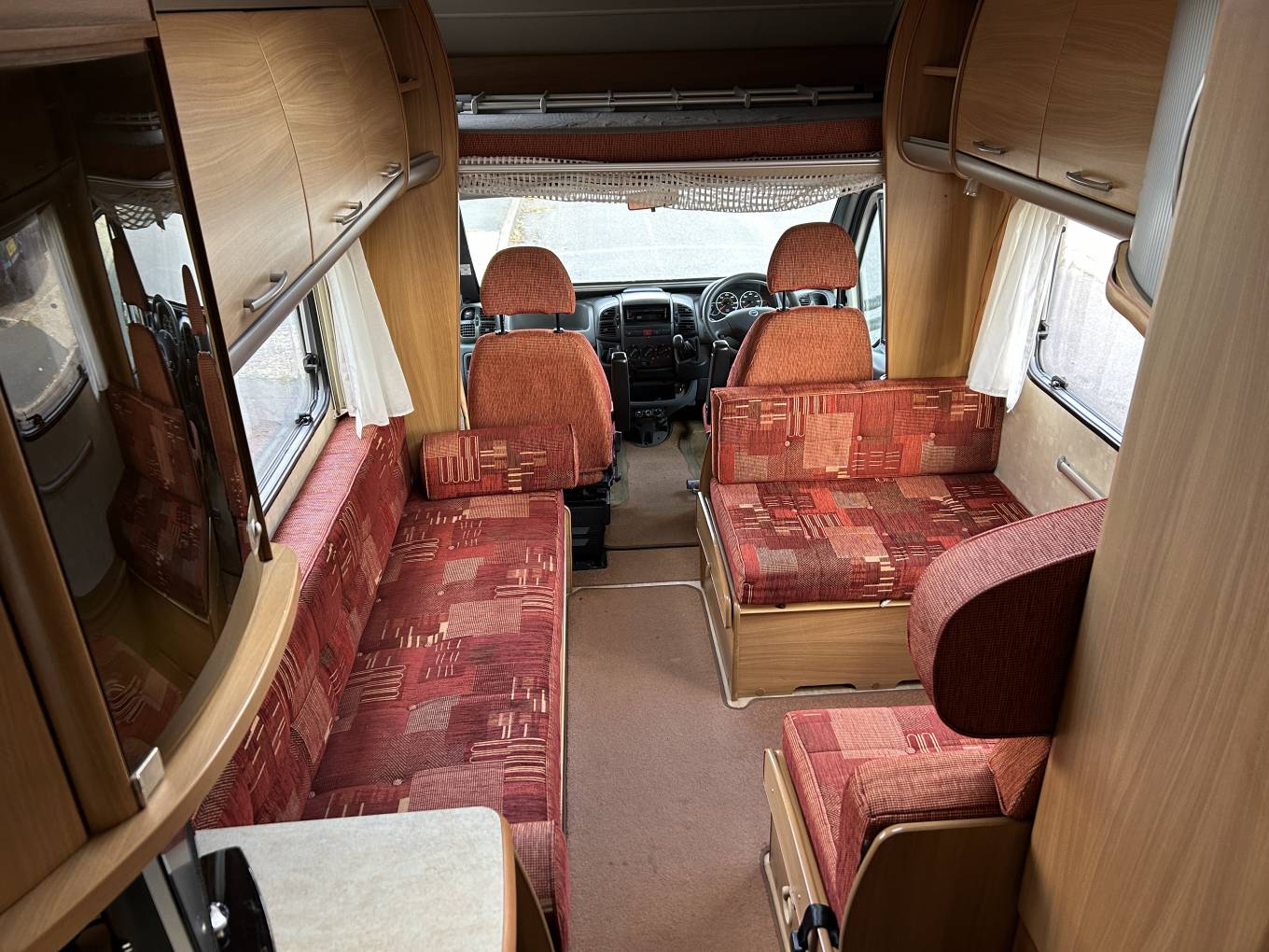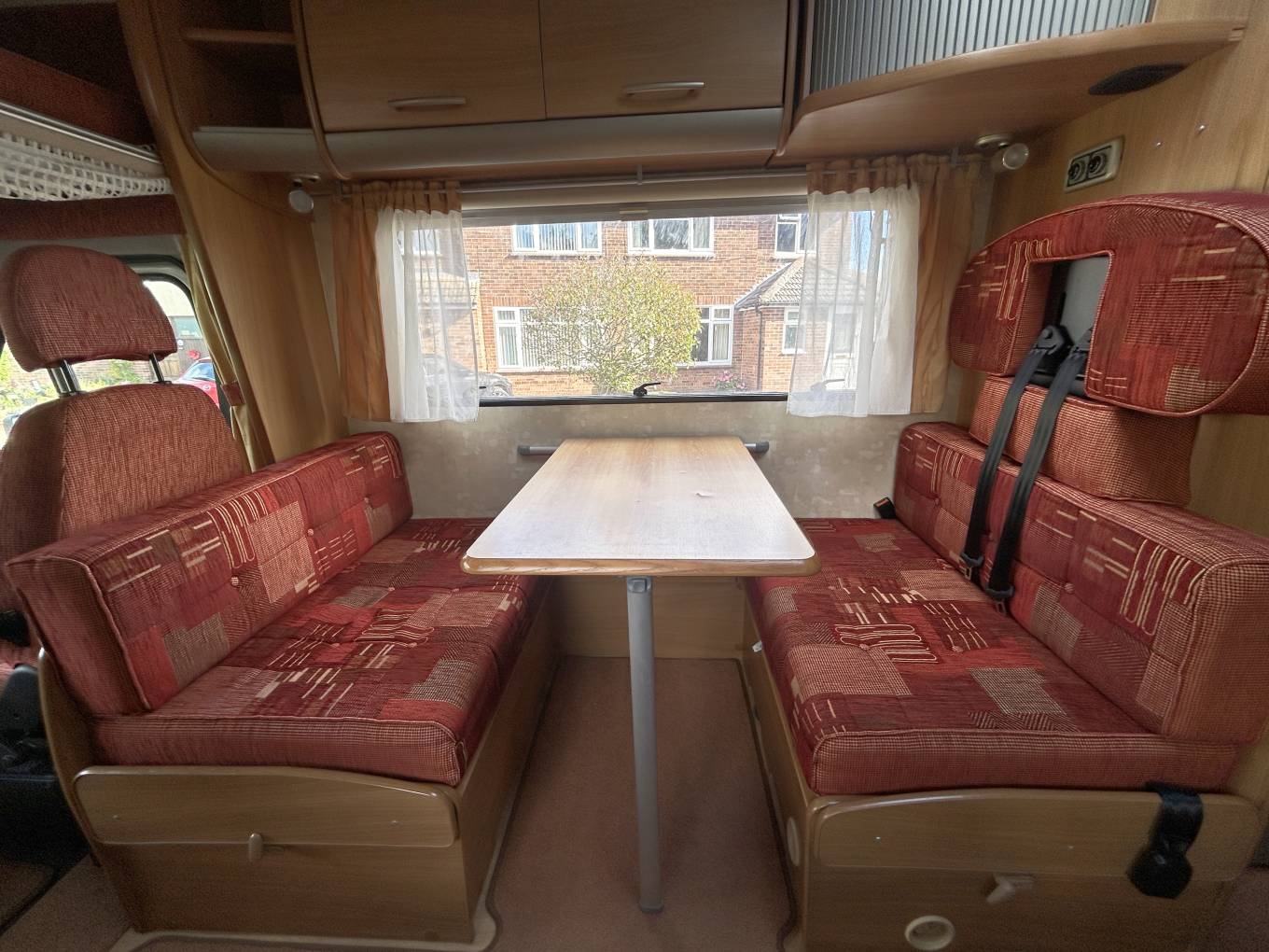 With two swivel front seats, cozy soft furnishings, and a homely atmosphere throughout, this motorhome feels spacious and inviting. It’s clear that it has been very well looked after and comes packed with desirable extras.