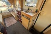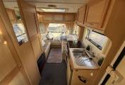 The layout of the motorhome is from the rear you have the light and airy lounge with all round rear panoramic windows and has a fold away table when required and with this area at night easily converted into a large double bed. Moving towards the front of the vehicle is a well-equipped kitchen with 4 burner gas hobs, oven, grill, and three-way fridge, Opposite sits a compact washroom incorporating vanity sink unit, cassette toilet and shower. Moving fully forward there is a double overcab bed which can be used for sleeping or it provides a huge amount of additional storage.