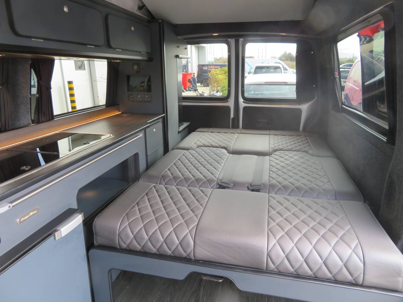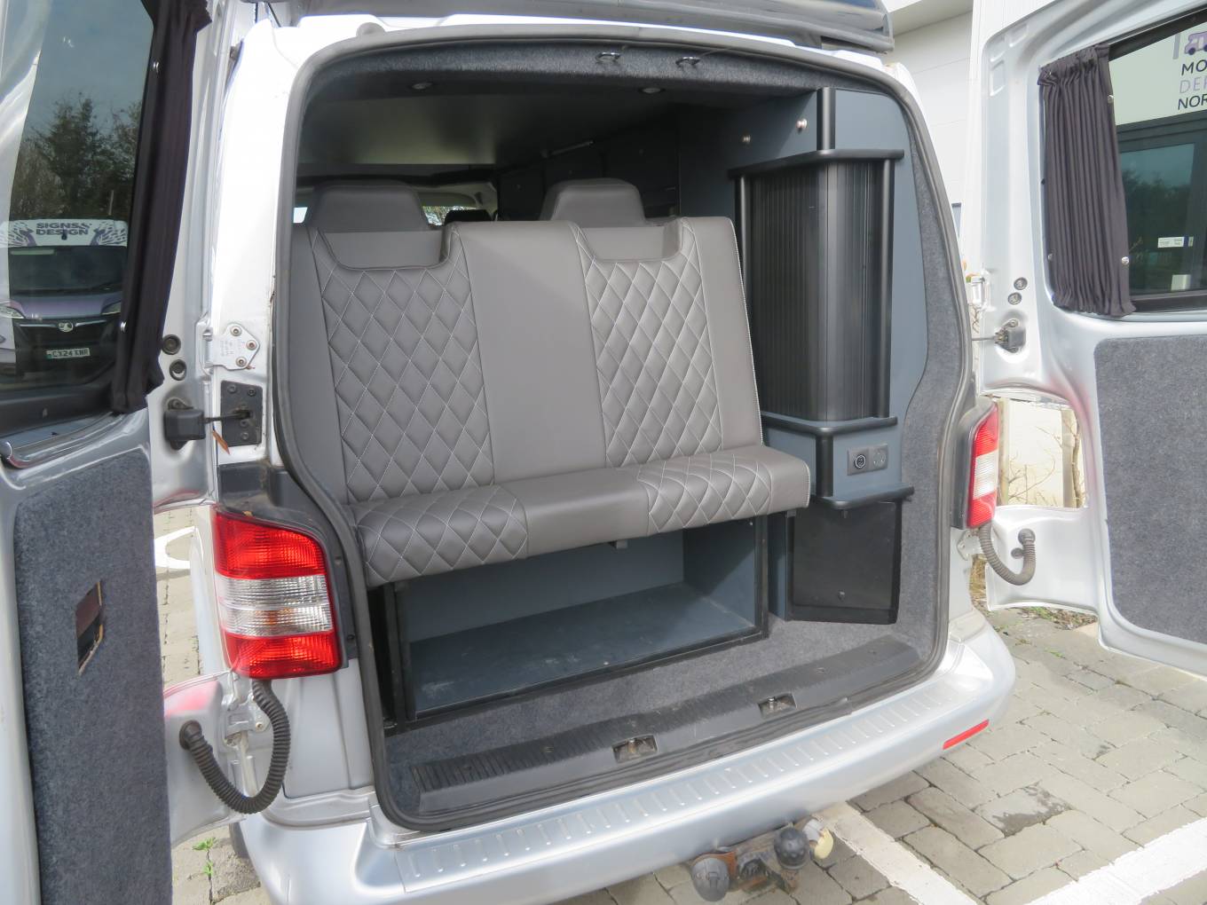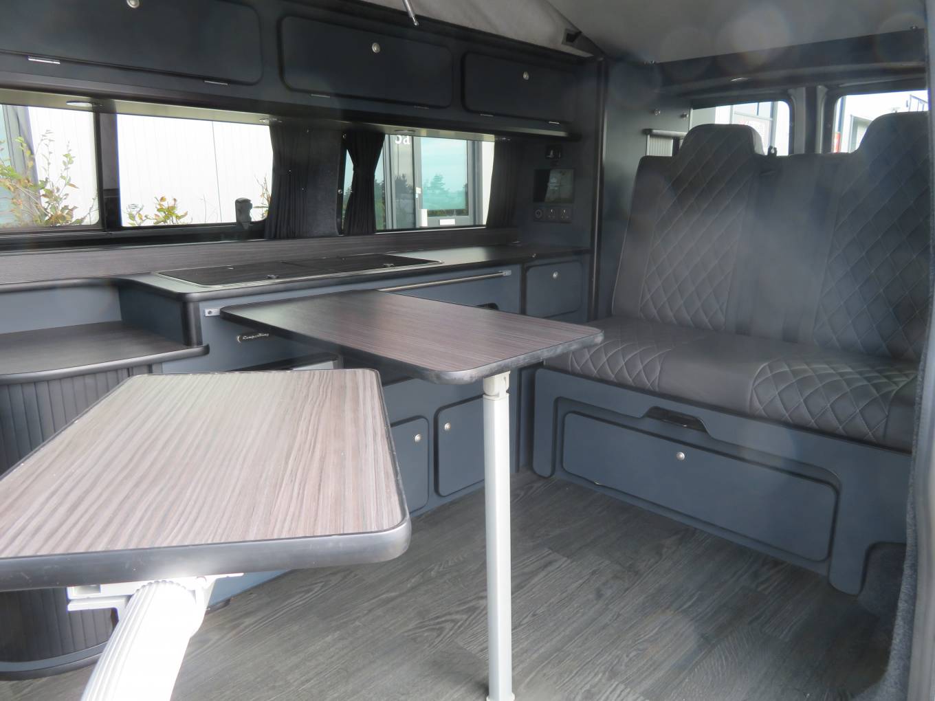 The Camper king Conversion has a lovely specification - Pop up roof with bed and mattress, Rock and roll Bed with additional seat belts, Diesel heater with digital thermostat