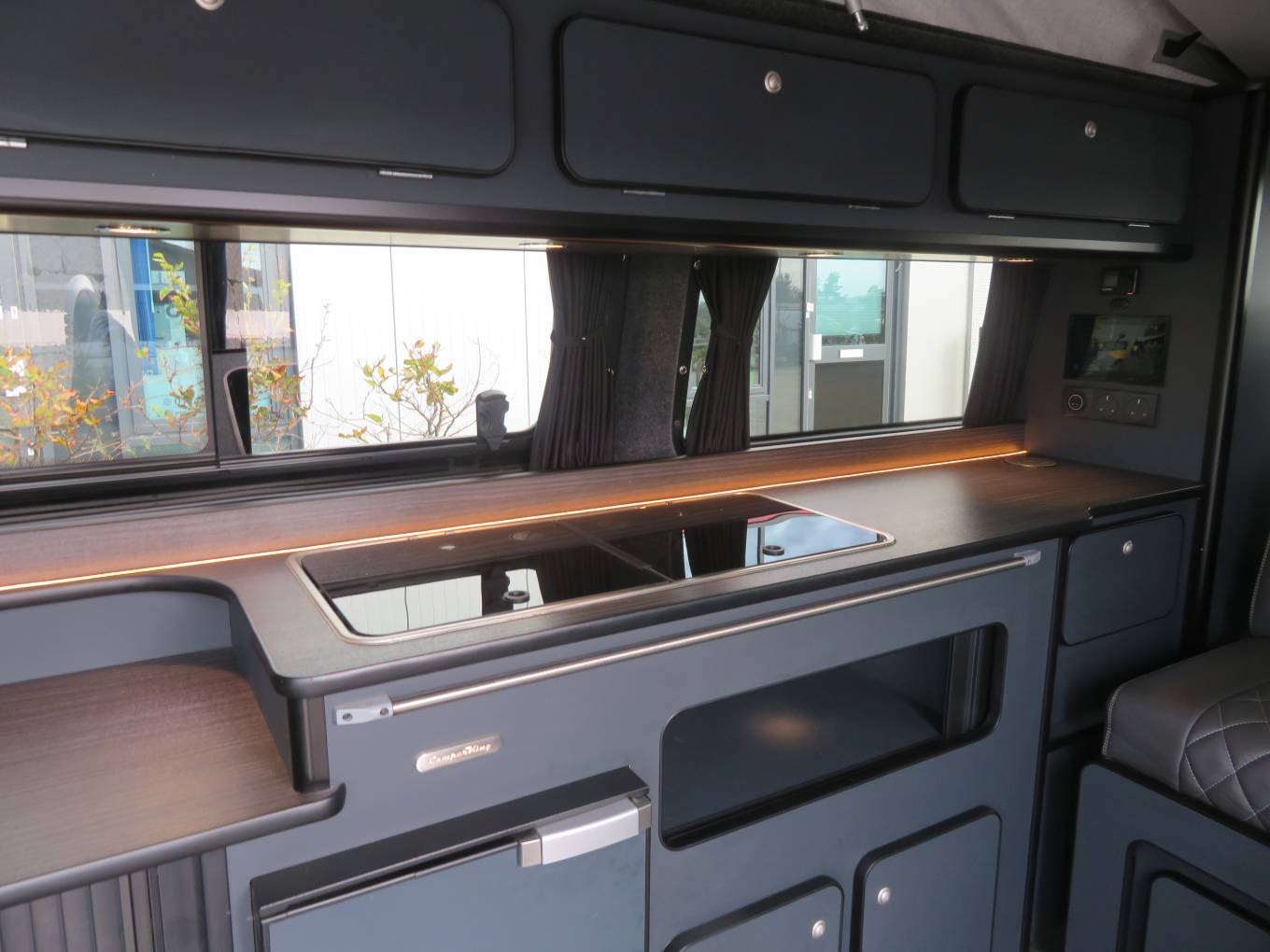 Extension cupboard, Combi sink and double hob unit, 50-litre fridge freezer, Single coffee table, Sliding stowable dining table, Multiple storage lockers,110Ah leisure battery, On-board fresh water tank with electric pump (20 litres),Wireless charging pad, Gas cupboard isolation taps and testing point unit, Ambient Lighting and even a solar panel.