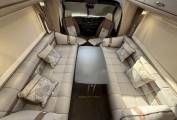 A removable swing arm coffee table is attached on the passenger side when lounging or there is a full sized dining table to sit in the centre when required.