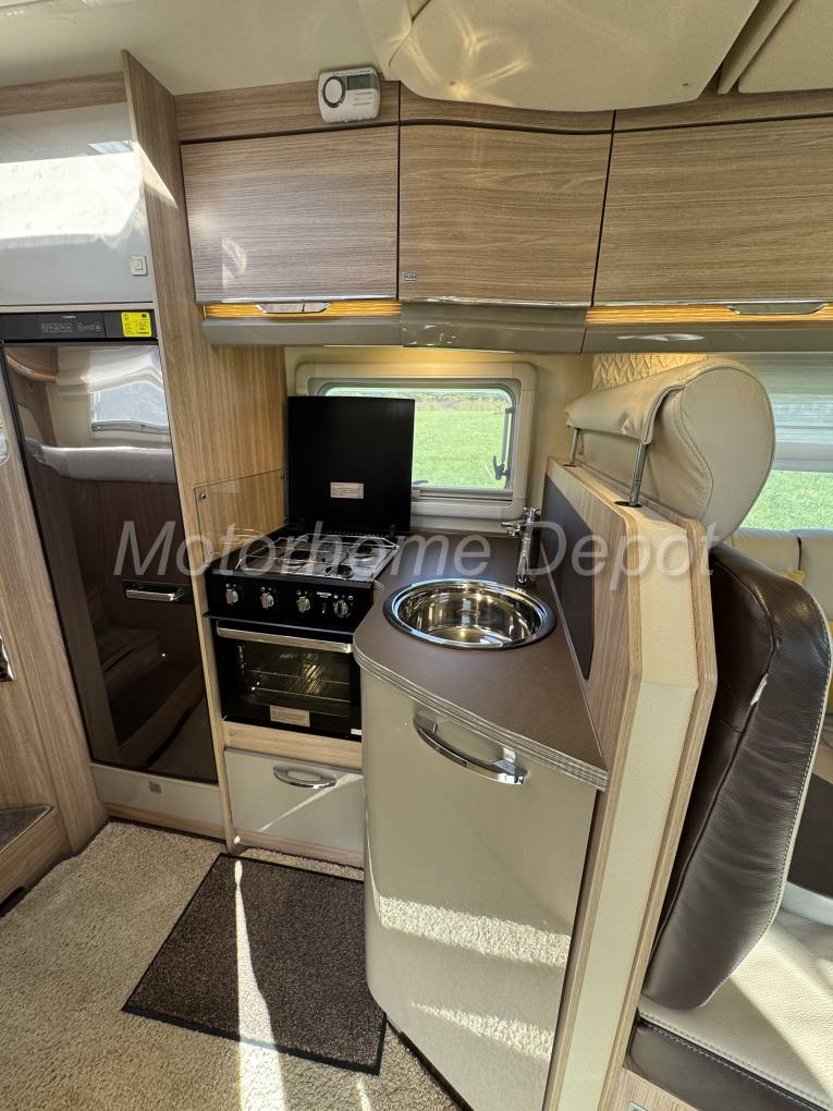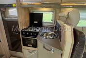 The central kitchen is well equipped with 3 gas burner hob with oven & grill below.12v extractor fan; plenty of cupboard & drawer storage for all your holiday provisions. Adjacent is a large 3 way Dometic fridge with separate freezer box that can be powered by 240v,12v or gas depending whether you are plugged in on site or wild camping.