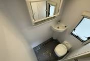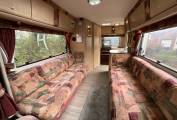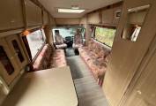 At the rear of the motorhome you will find the well equipped kitchen area which includes an oven and grill, 4 x gas hob, sink with mixer tap and drainer, fridge with freezer compartment and plenty of storage. Moving forward is the practical washroom complete with shower, Thetford toilet with electric flush, wash basin with mixer tap and a vanity mirror. In the heart of the motorhome is the light and airy dinette area. With 2 side facing sofa, 2 captain swivel seats and a removable table there is plenty of room to dine comfortably or sit and relax. As the night draws in this area quickly and conveniently converts in to a large double bed or alternatively use them as 2 single beds. Throughout this motorhome there is bags of storage including overhead lockers, a large wardrobe and under sofa storage.