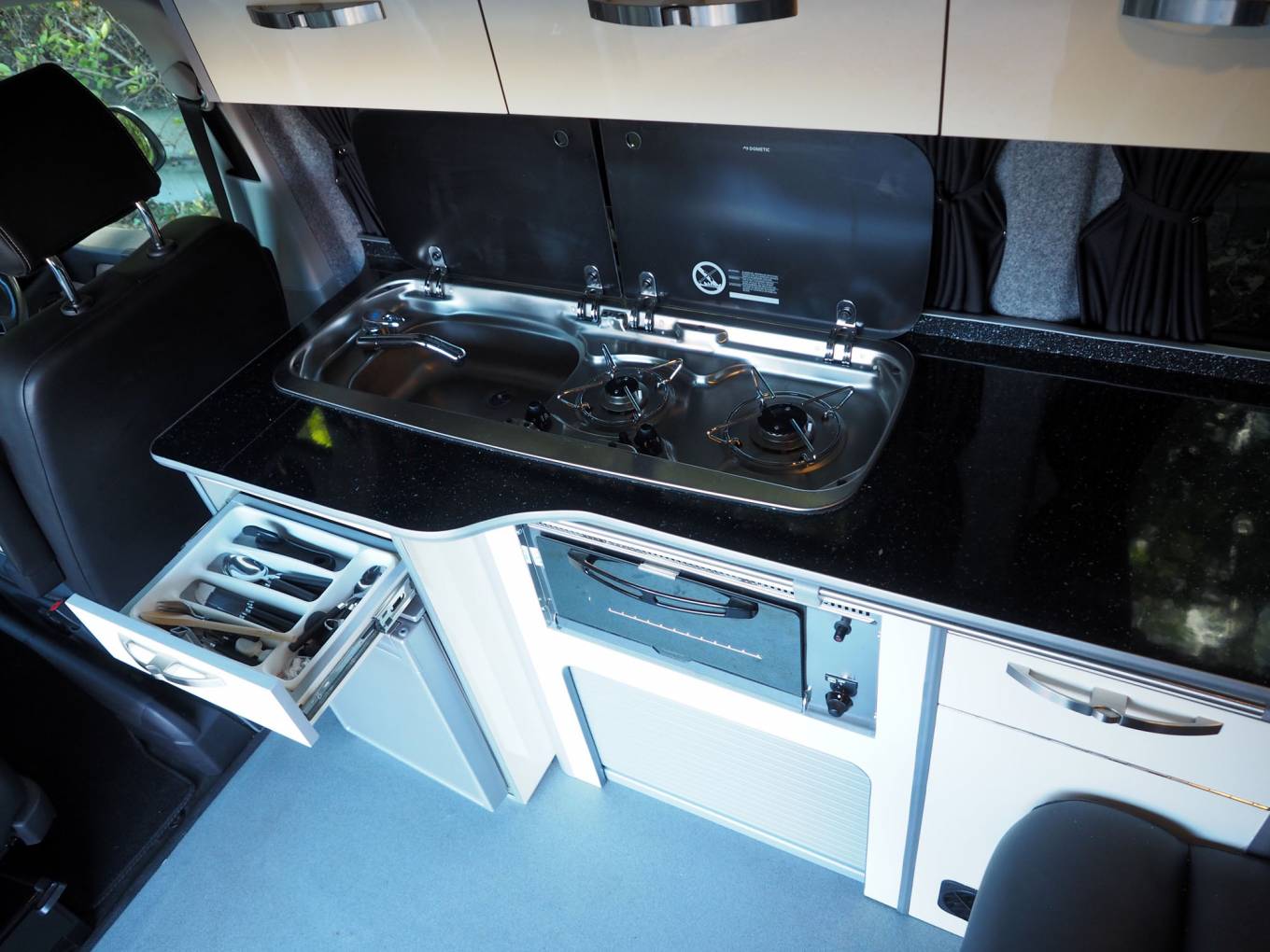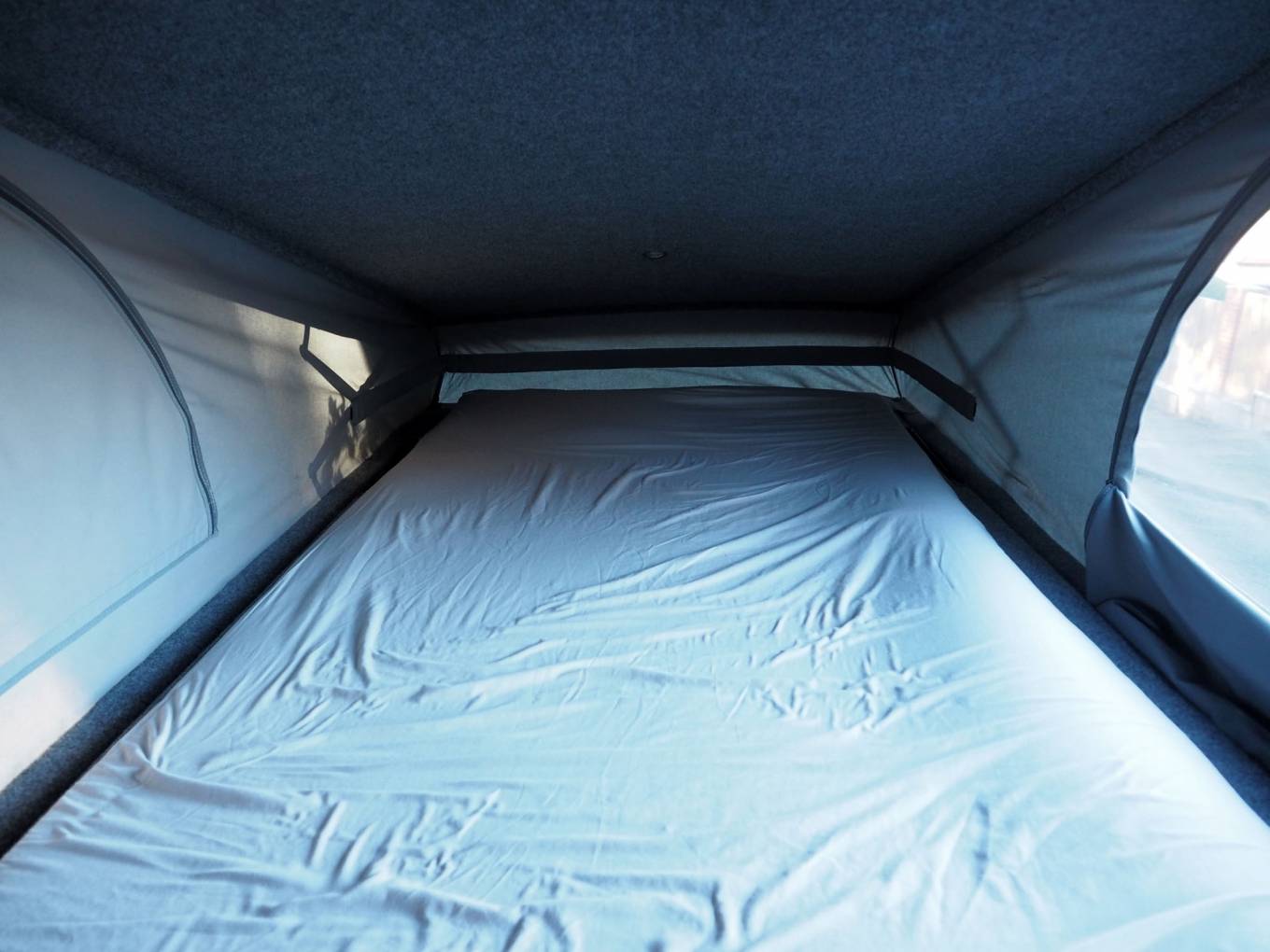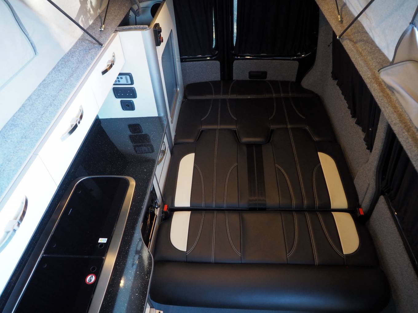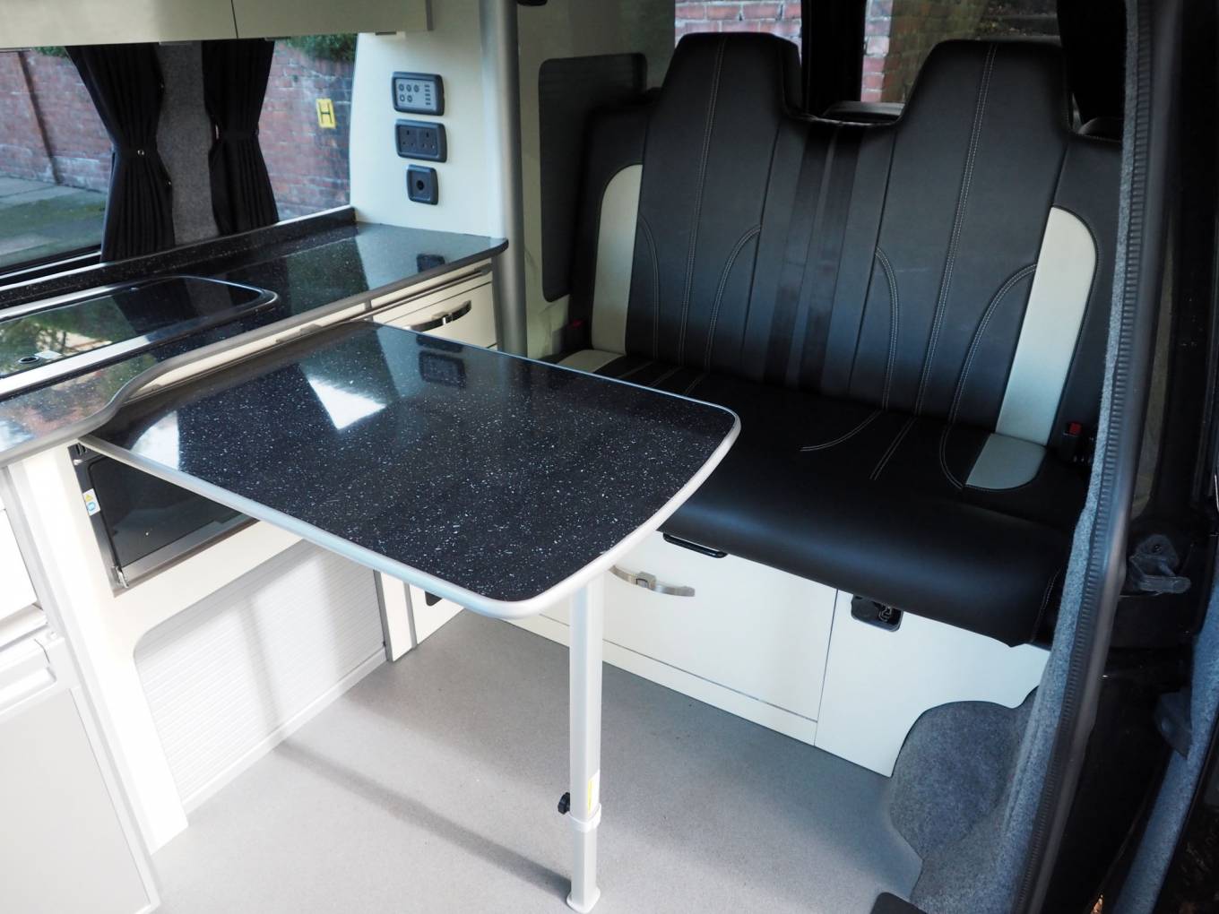 All fixtures and fittings are of high quality including a gas strut assisted rear bed for quick and easy makeup. The rear panel and doors have windows so the interior never feels oppressive and curtains are present for privacy.