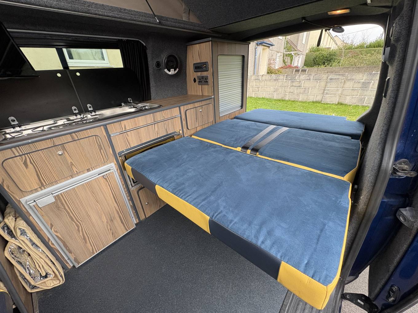 This camper has some lovely features which include; Striped Interior Lights, Electric Mirrors and Heating, Alloys, Radio, Pop Top with Sleeping Area, Table for the Central Area that stores away behind the driver seat, Plenty of Storage, 240Hook up Point, Small Gas Bottle, 240 Sockets in the Rear, Fridge, Cold Water Unit, 2xGas Hobs, Grill, Double Swivel Seat with Storage, Silverscreens.