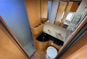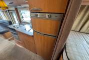 The kitchen is fully equipped with a hob, top oven, sink basin, and ample storage—ready for whatever meals you plan to cook on the road. Alde heating ensures you stay warm and comfortable year-round, no matter the season. A compact washroom adds convenience without compromising on space.