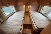 Inside, you'll find a spacious and inviting dinette area as you enter—perfect for relaxing, dining, or entertaining. The large over-cab double bed provides generous sleeping space, while the rear sleeping area can be configured as two singles or transformed into one large double to suit your needs. This layout makes it ideal for both couples and families.