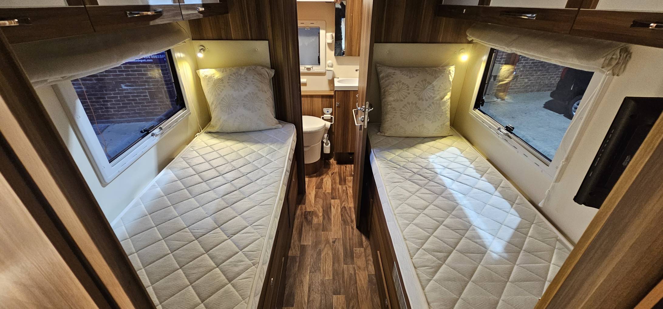 It has covered only 15000 miles. The cam belt has recently been changed and it has had a recent habitation checkIt is a 4 berth with rear twin single beds and a drop down double over the lounge area