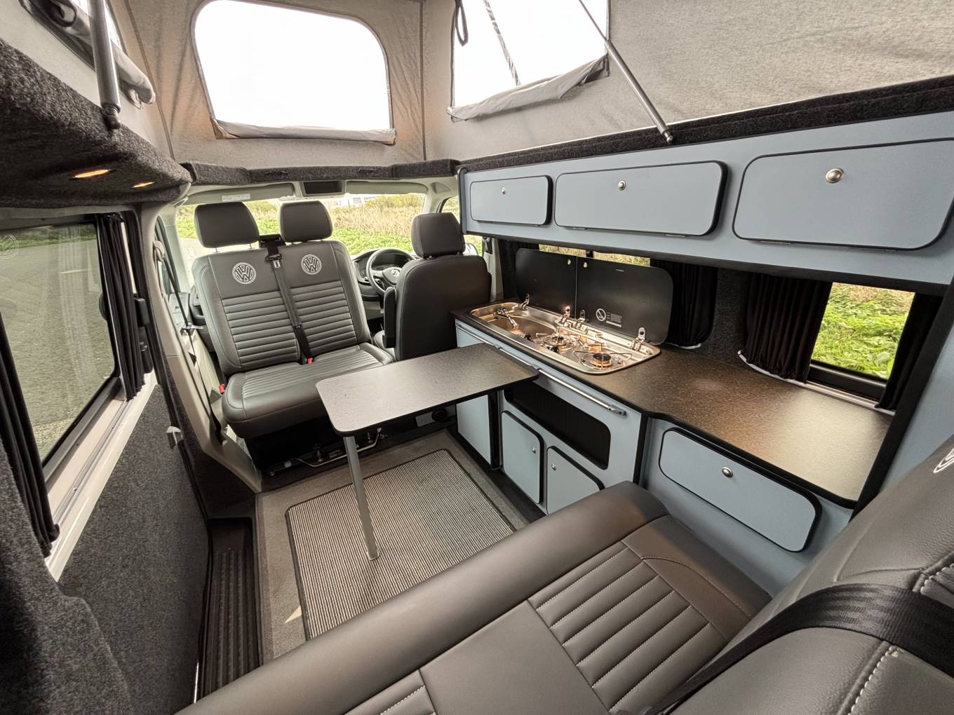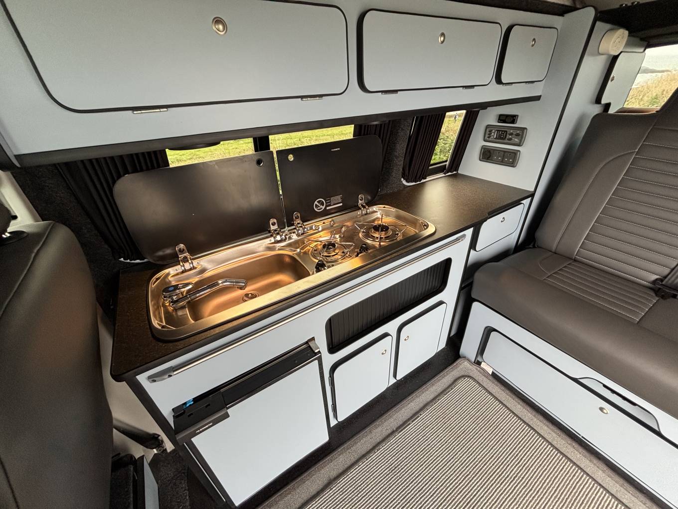This Camper is Euro 6 compliant! comes with FULL SERVICE HISTORY a Recent MOT and Cambelt change both in October 2025. It’s powered by a 2.0 Litre TDI Diesel Engine with a 5 speed manual gearbox. Stylish and luxurious this conversion is one that will not limit you on where to go and what routes to take at just 4.8metres in length. A perfect choice if you are also looking for something that can be also used as a leisure vehicle. You can also sleep up to 4 people and travel up to 5 people at any one time.