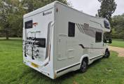 Outside you have a Fiamma wind-out sun canopy, bike rack for 4 cycles, TV aerial, solar panel, gas BBQ point and a shower point with included handset, alloy wheels with new tyres all round and storage lockers. The bottom bunk bed raises up so that you can use the rear space as a garage and can be accessed by a large door on the near-side and a smaller door on the off-side.
