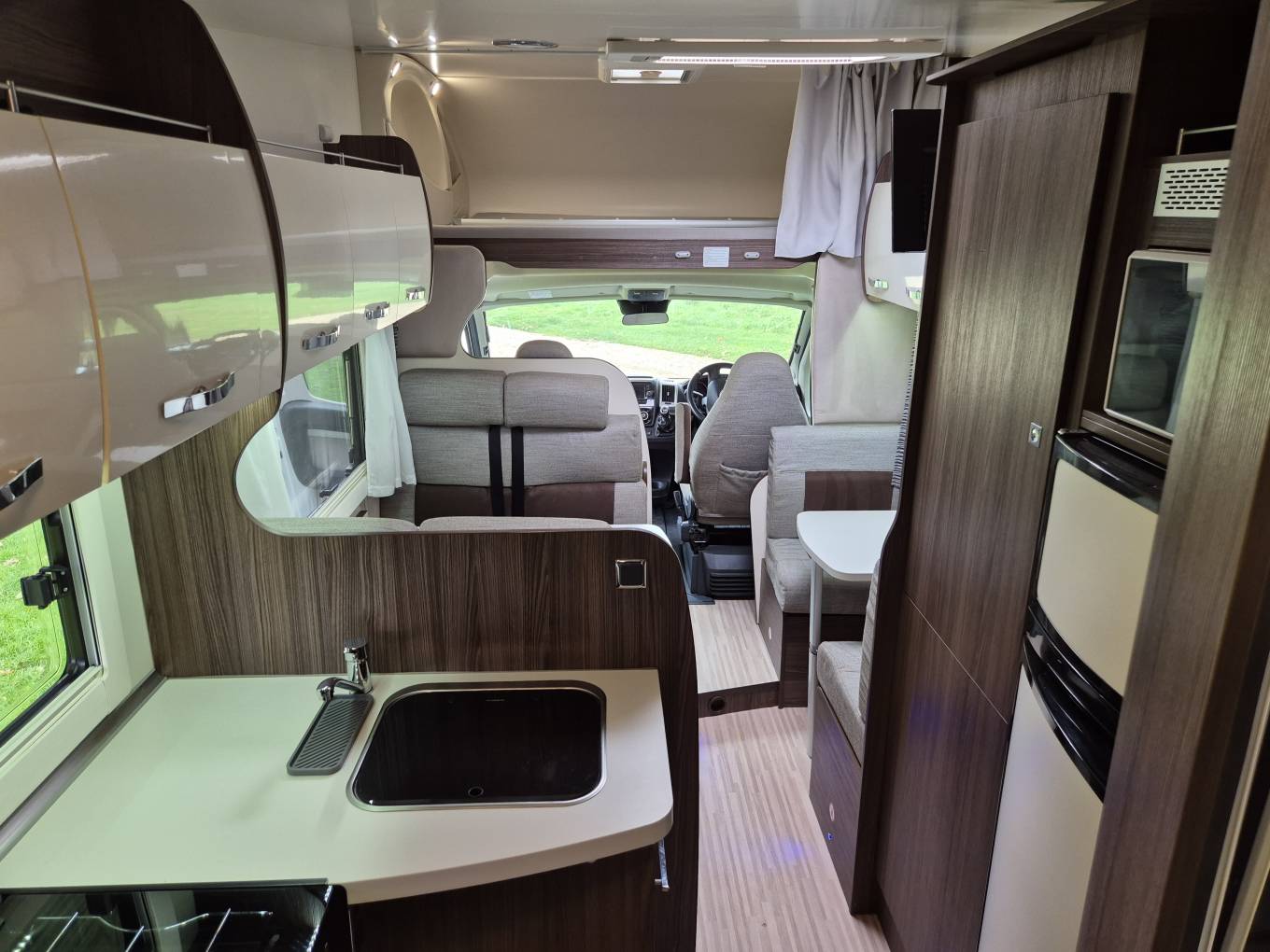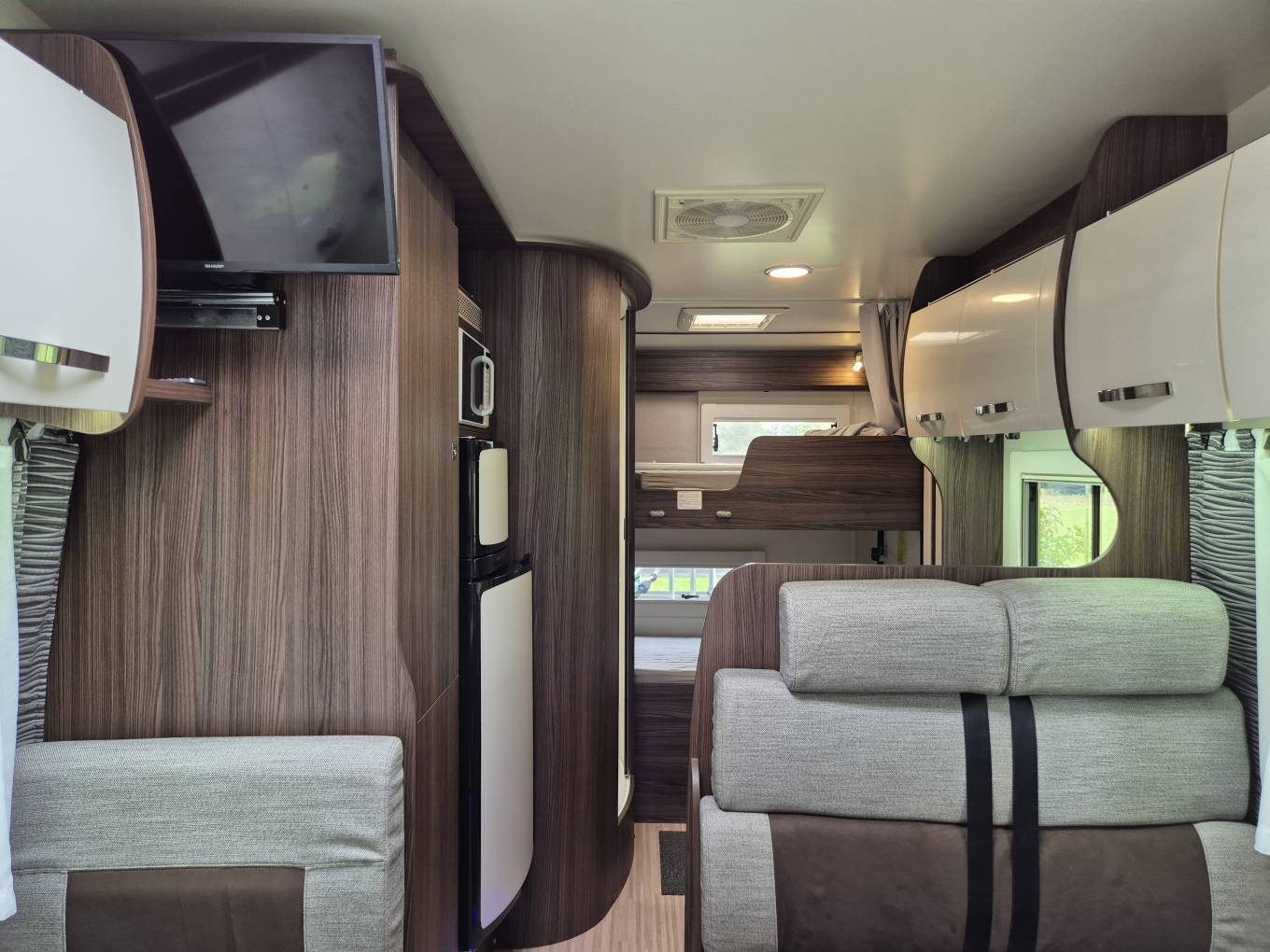 Truma gas and electric space heating and hot water heating, loose fit carpets, good sized wardrobe with hanging rail, plenty of upper aircraft style storage lockers and under seat storage available, black-out blinds and fly-screens throughout.