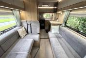 Built on the ever-reliable Fiat Ducato chassis with a 2.3L diesel engine and 6-speed manual gearbox, the Imala 615 comes in at a very manageable 3,500kg, meaning it can be driven on a standard car licence. Inside, the layout is both flexible and comfortable, making it ideal for couples or small families. The front lounge consists of two opposing bench seats which easily convert into a large double bed or two singles, and the overcab double bed provides an excellent fixed sleeping area or useful additional storage space if not required for sleeping.