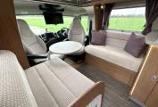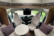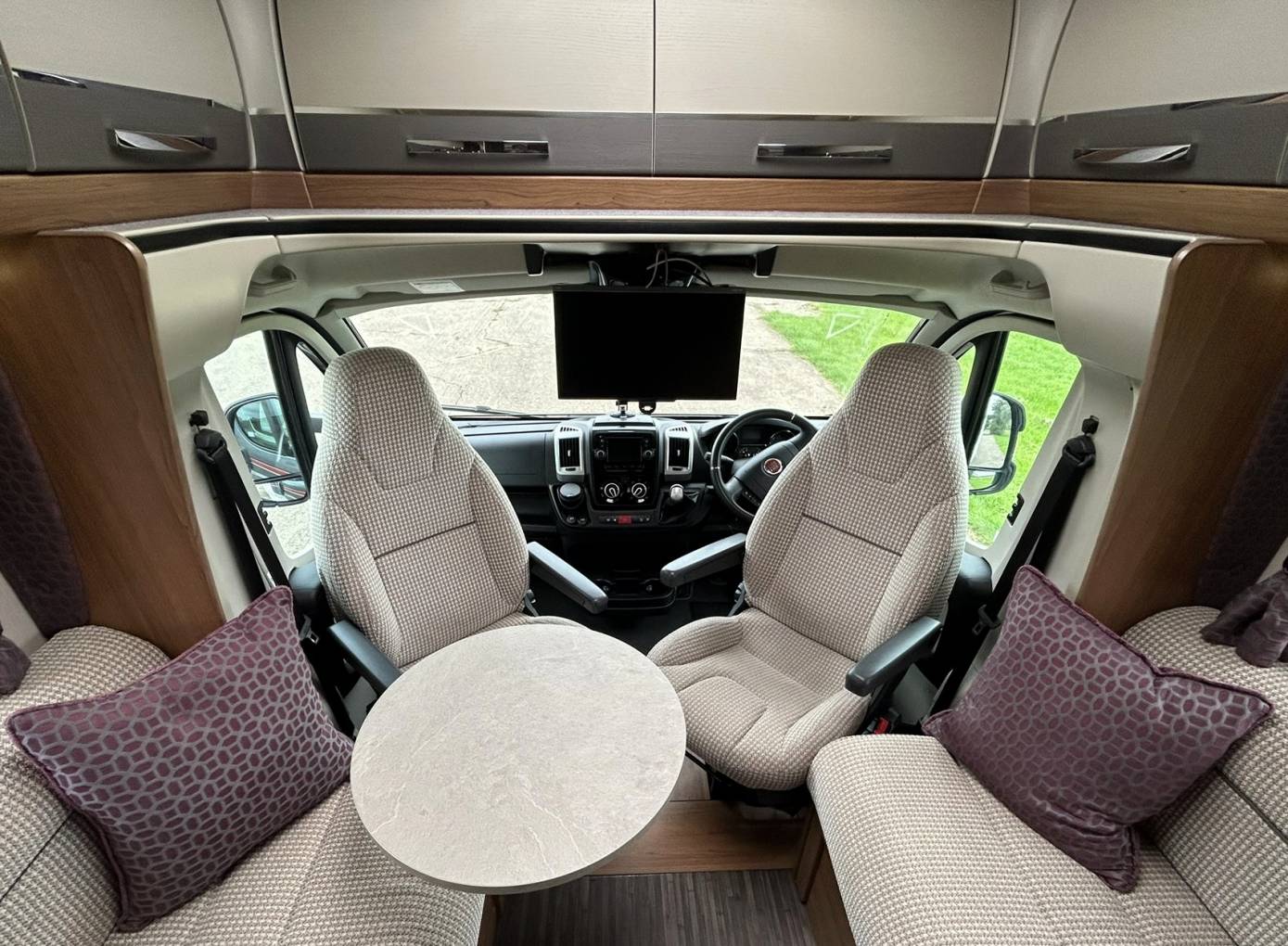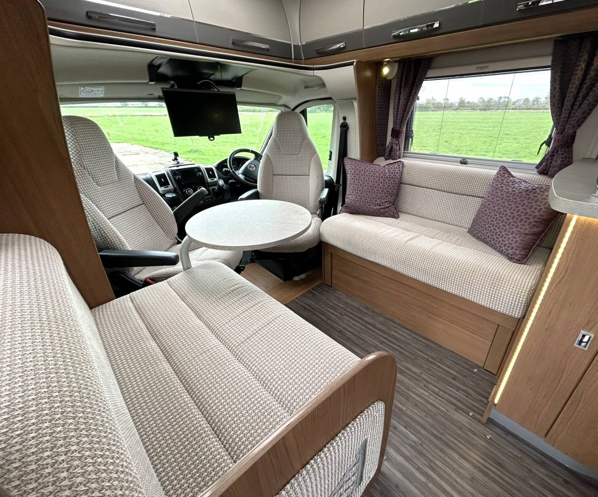 In the cab, you will find a DAB radio with Bluetooth connectivity, a reversing camera, cruise control, cab air con, NAVPAL motorhome sat nav, Remis cab blinds and a drop-down Satellite TV.
