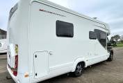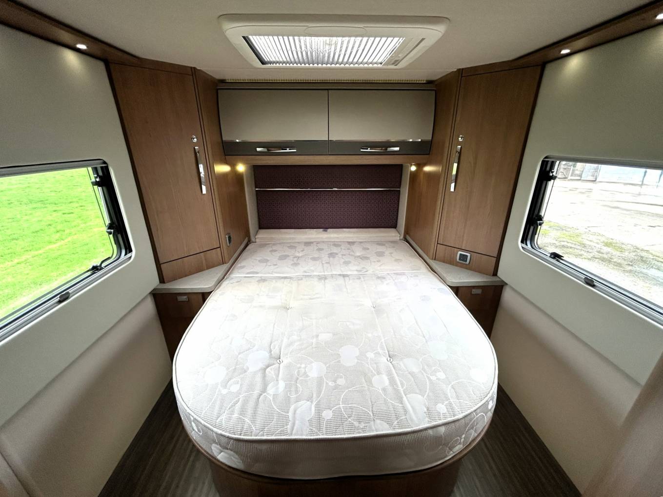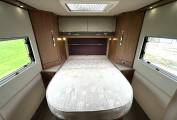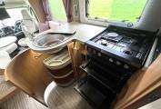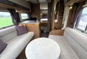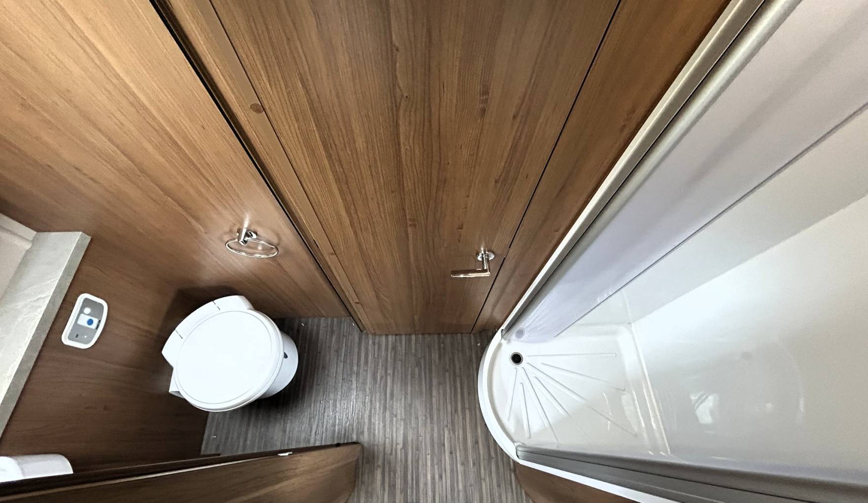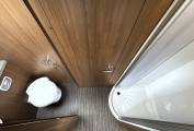 For added comfort, there's a separate shower cubicle with foldable doors, a washroom with a hand washbasin, chrome mixer tap, and a Thetford cassette toilet with electric flush.
