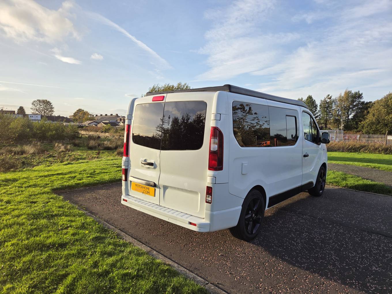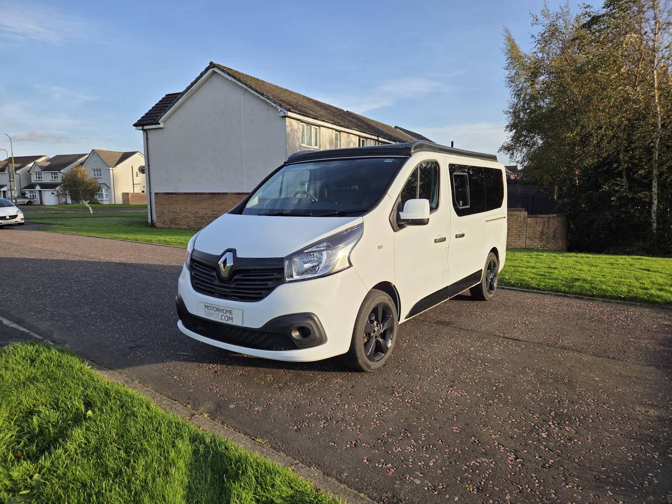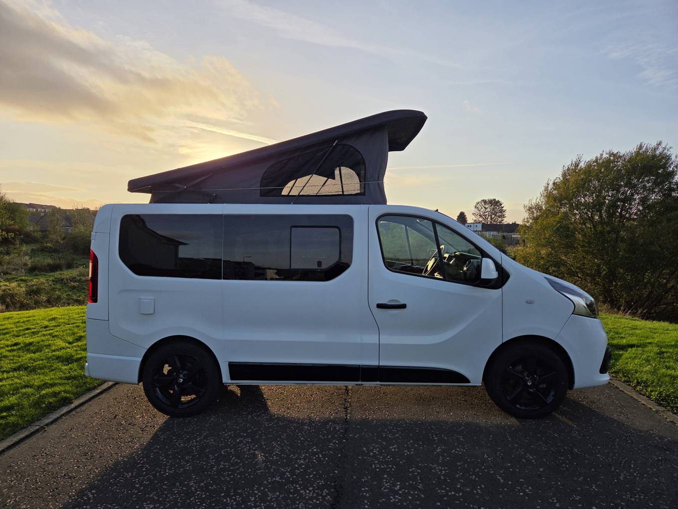 Motorhome Depot – Edinburgh, are delighted to bring this 2015 Renault Trafic Business SL27 DCI SWB ‘Pop Top’ Campervan to market. The van is a head turner in its gleaming, perfectly balanced black and white colour scheme.