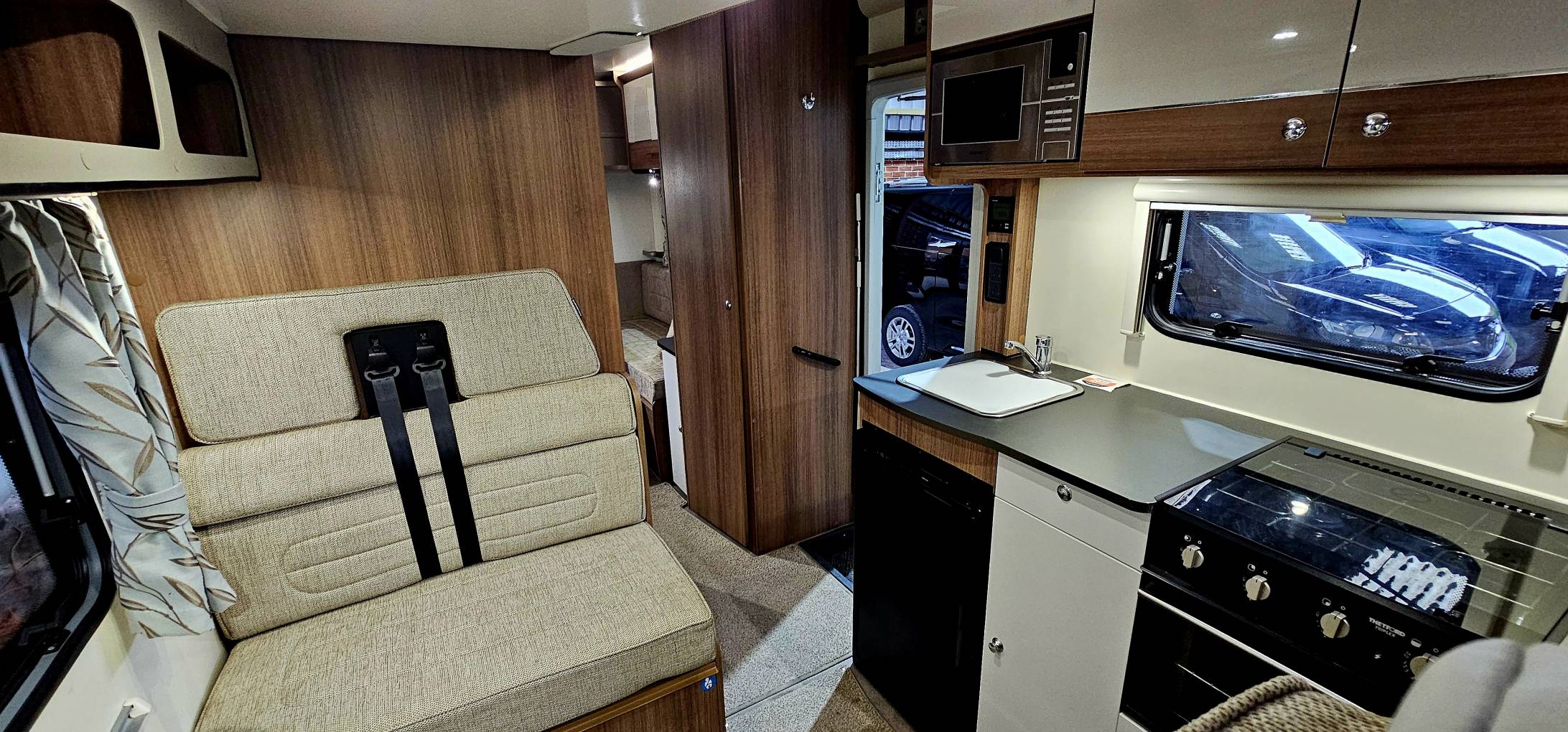Opposite this is the forward dinette with 4 belts