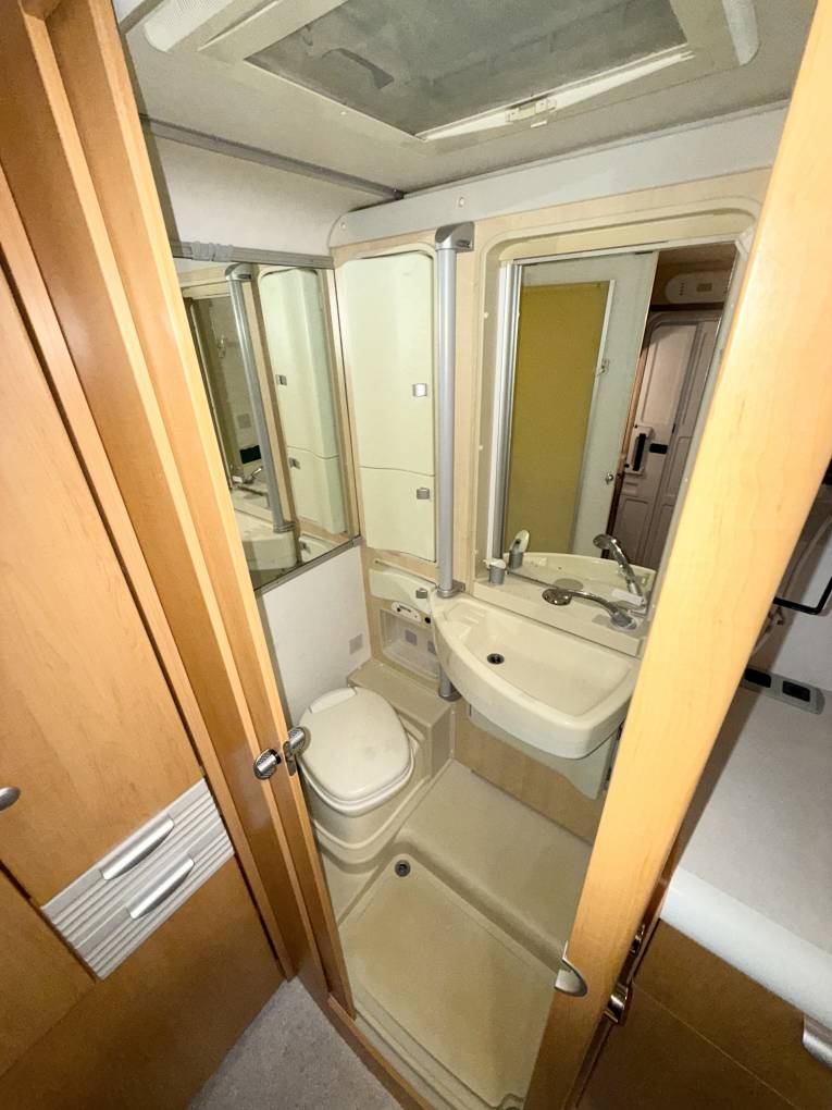 A heater quickly warms up the living space and there is a good sized wardrobe too with further storage to the rear wall. The real surprise is the fully equipped washroom which has a cassette toilet, sink and vanity mirror and storage and an overhead shower. All self contained and a great asset to have in such a compact vehicle.