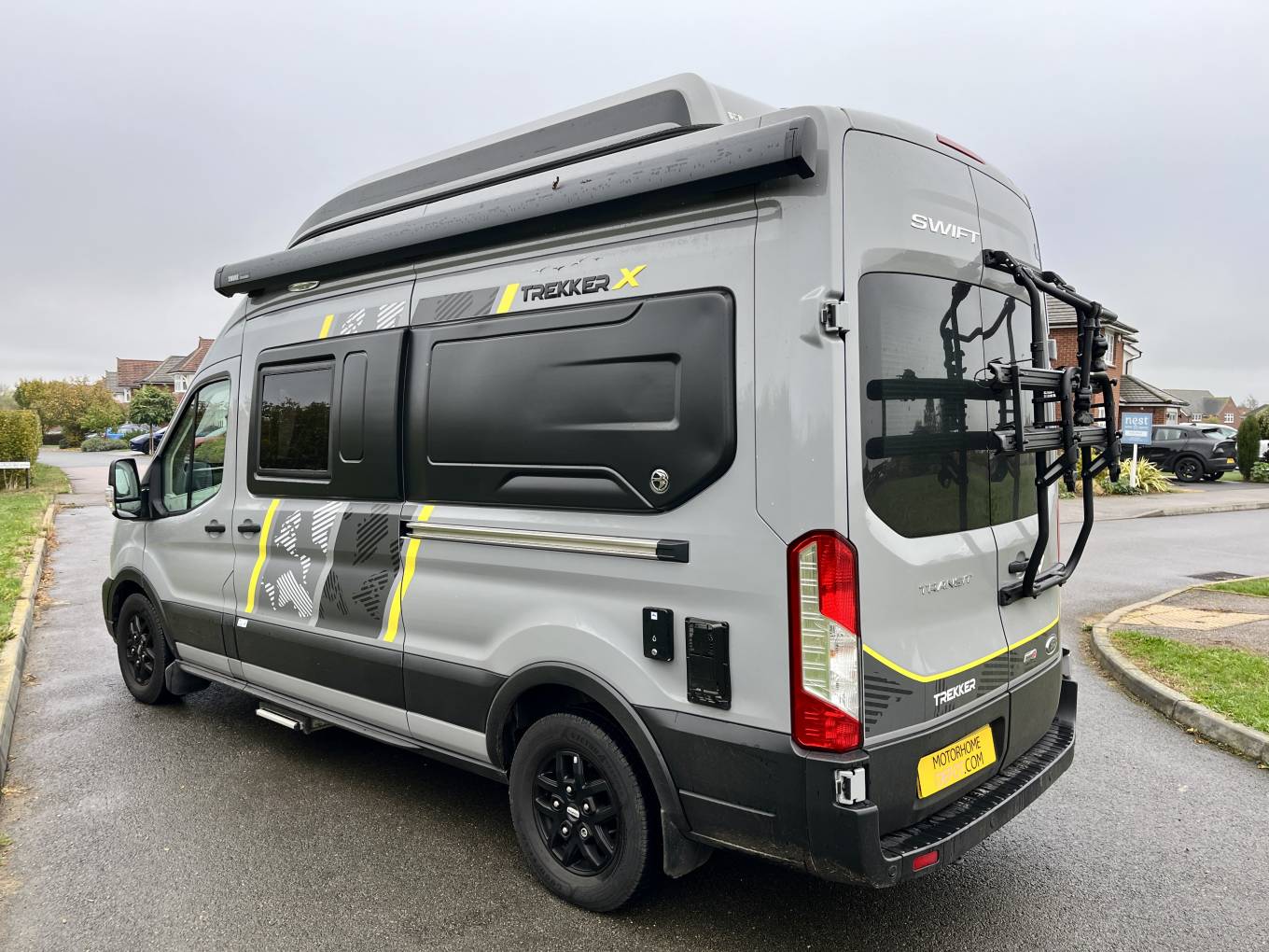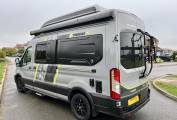 Finally to the van exterior we have a wind out awning, solar panel, BBQ point, outside shower point and electric step, with it's distinct grey matter body, black paneling, stylish 16” alloy wheels in Matt Black and vibrant graphics the Trekker exudes ruggedness without compromising on style, making it stand out in any setting. Engineered for road-ready performance, Trekker is fit for exploration and new adventures afar.