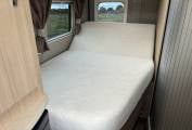 Sleeping is extremely comfortable in this Kingham with the fixed French bed at the back. This comes with an adjustable head position - ideal to relax on and read a book or watch TV. The bed also pushes up to give you lots of storage space underneath. At the rear there is also a good sized washroom with flush cassette toilet, sink and shower. Heating and hot water are provided by the Truma I-net system. Externally the motorhome comes with a large wind out awning, has an underslung gas tank and also has an external gas point. There are two leisure batteries on this motorhome giving you lots of power when you are away. In summary, this is a great panel van style motorhome that is packed with features and gives you all the comforts of a larger motorhome.