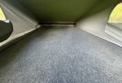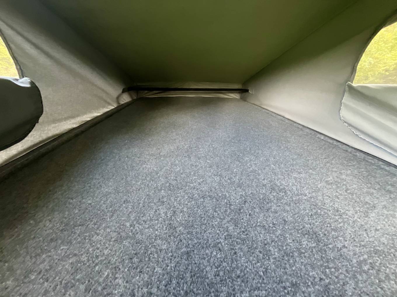 Above, a pop-top extends the space in the van and can be used for extra headroom or sleeping at night. The mesh windows can be opened to allow more natural light and a screen at the front allows for extra brightness.