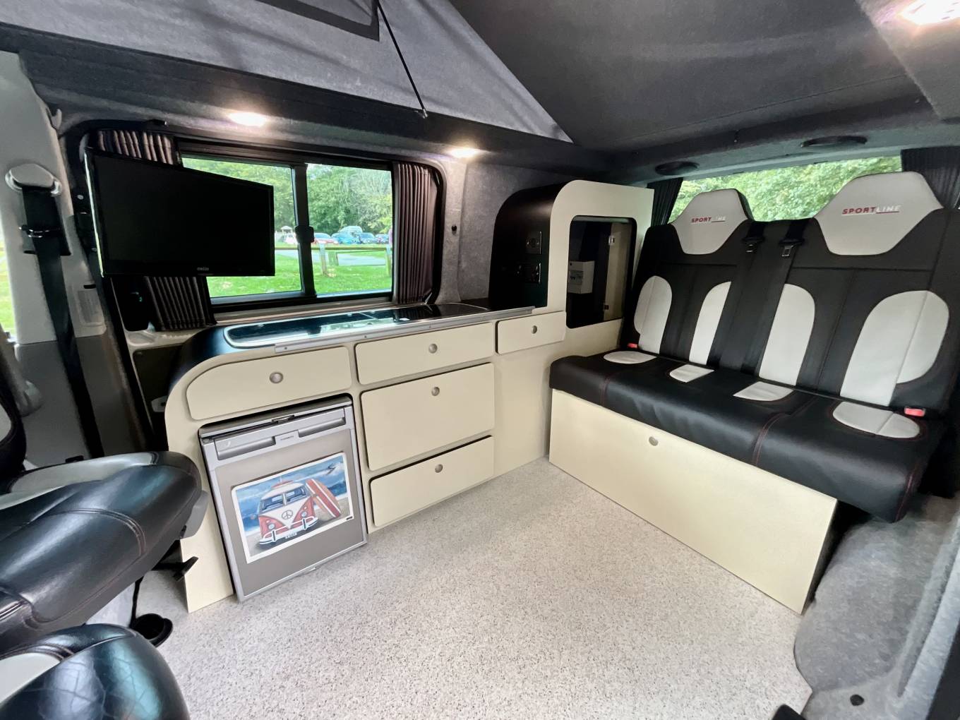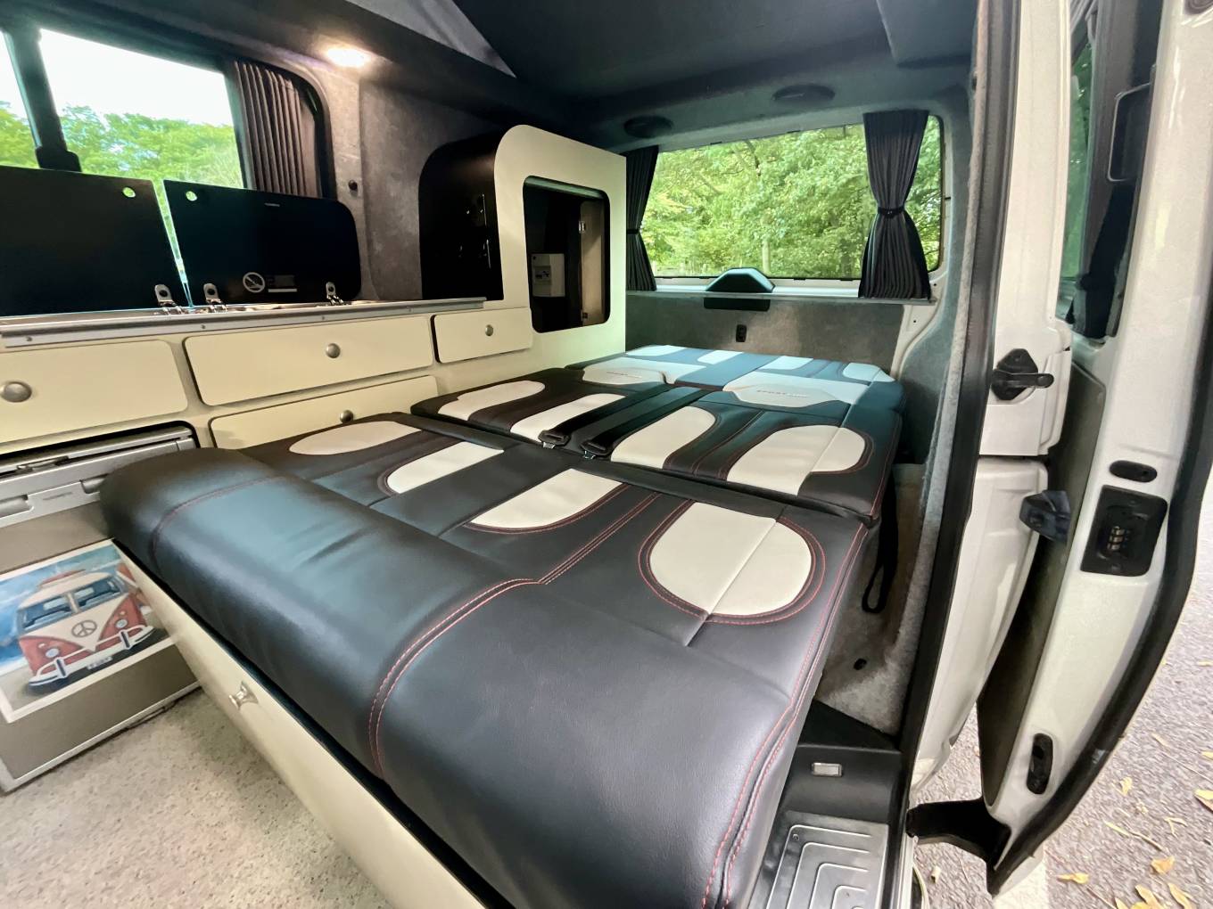 Professionally converted by Camper_versions, this campervan comes with the ever sought after DSG automatic gearbox making driving a pleasure. Being the Sportline, the leather seats compliment this vehicles style and look, making it truly unique in the campervan world and would be the pride of any owner.