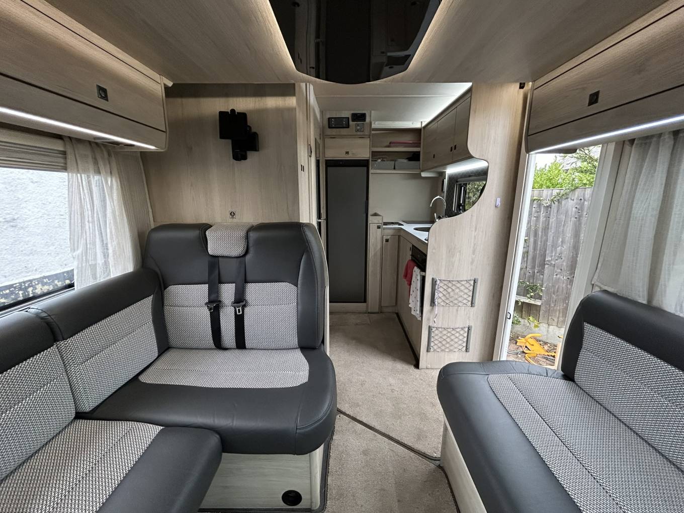 Driving is a pleasure thanks to the automatic gearbox, cruise control, and built-in sat nav, while the solar panel, Bluetooth connectivity, and reversing camera add to the convenience and usability of this modern motorhome.